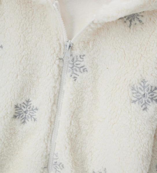 Veste à capuche en fausse fourrure très douce avec ouverture sur le devant. Des broderies en lurex ornent le vêtement, apportant une touche élégante et ultra-tendance à la tenue hivernale.