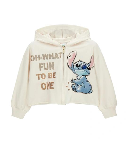 Sweat-shirt Disney Stitch en coton stretch avec capuche, fermeture éclair sur le devant, intérieur brossé, imprimé Stitch et détails pailletés sur le devant pour un look chaud et brillant.