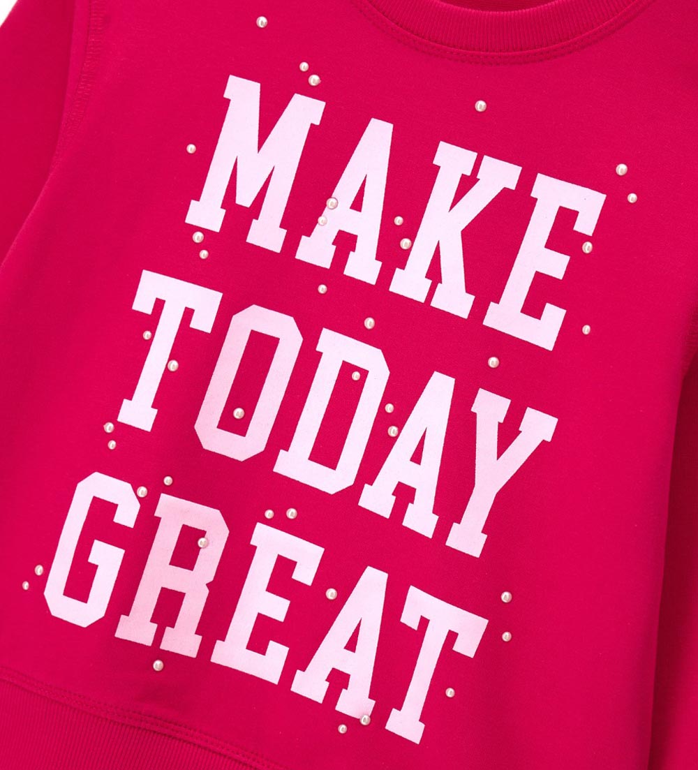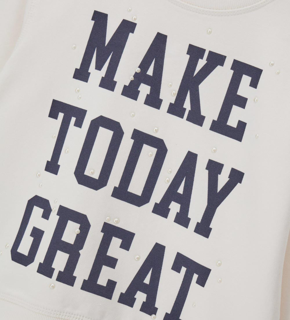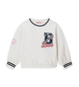 Sweat-shirt en coton extensible à col rond et manches longues. Ses finitions côtelées et ses élégantes applications de fausses perles sur le devant lui confèrent une touche chic et tendance.