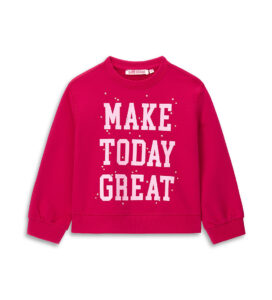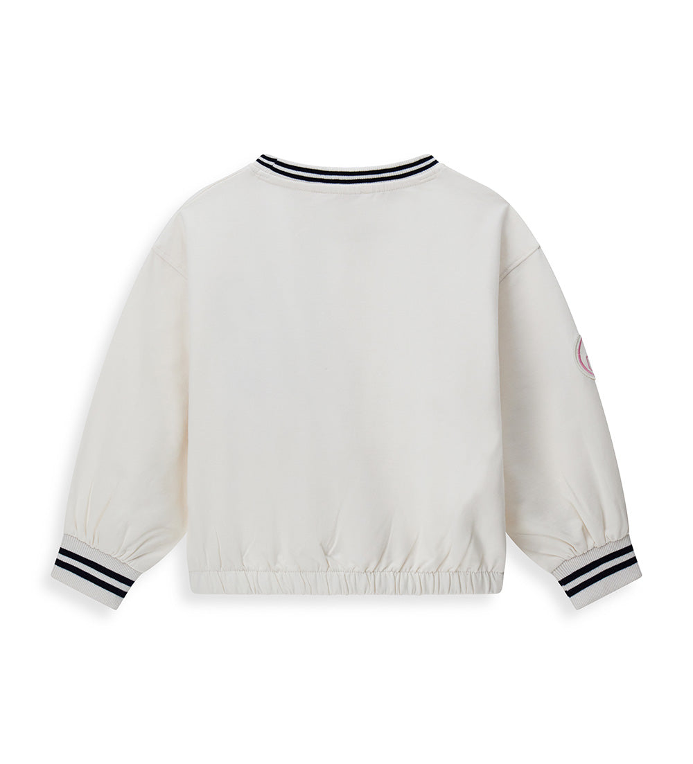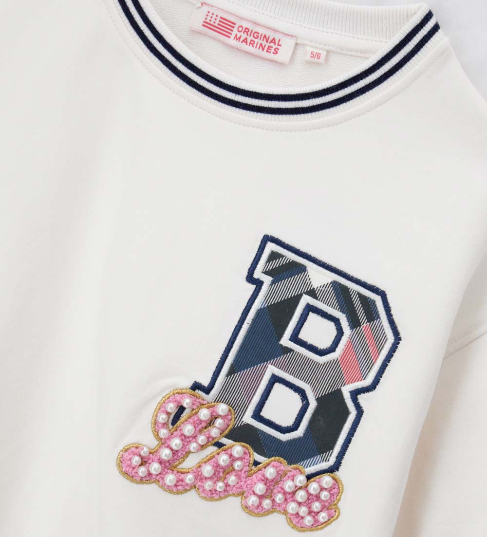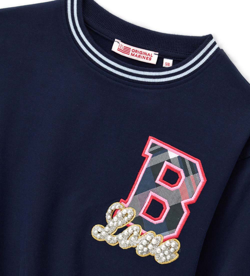 Sweat-shirt en coton extensible avec col rond, manches longues et poignets côtelés, ourlet ballon et application de paillettes sur le devant pour une touche élégante et brillante.