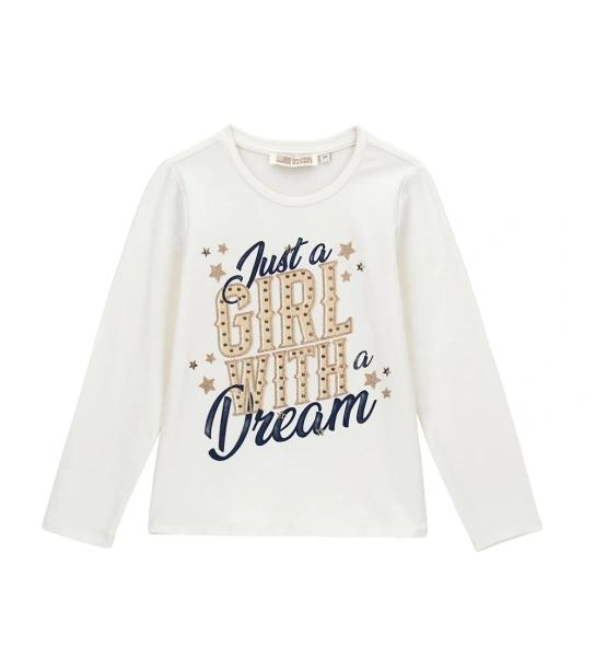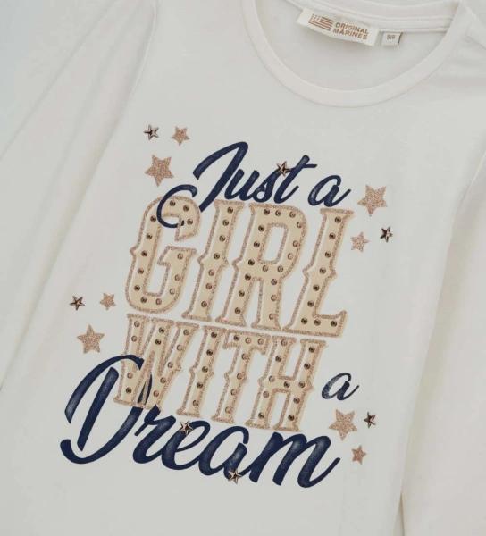 T-shirt confortable et tendance en coton stretch, à col rond et manches longues, orné d’un imprimé et d’applications décoratives sur le devant.
