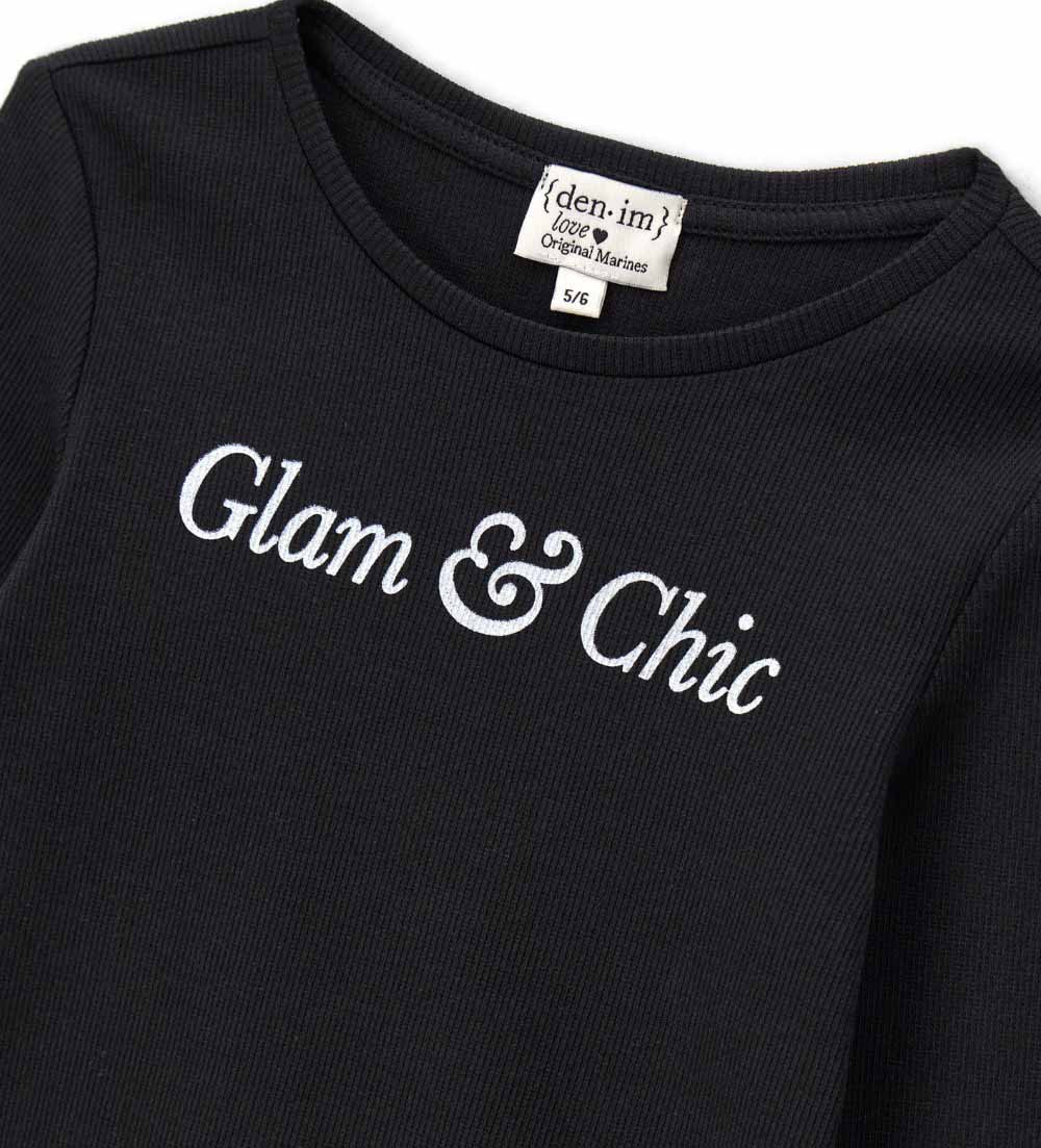 T-shirt en coton côtelé à manches longues avec col rond et imprimé pailleté contrastant sur le devant pour une touche lumineuse et stylée, parfait pour un look élégant et tendance.