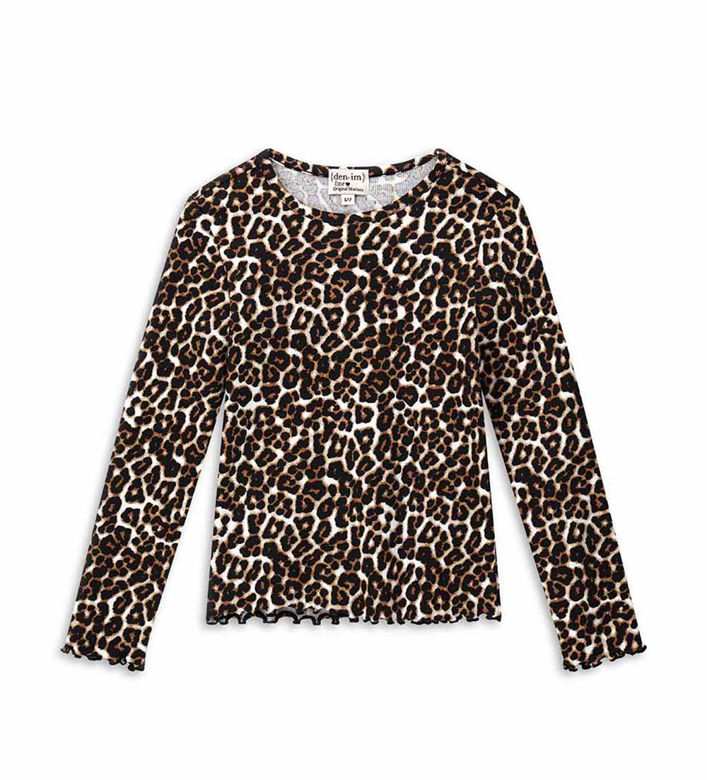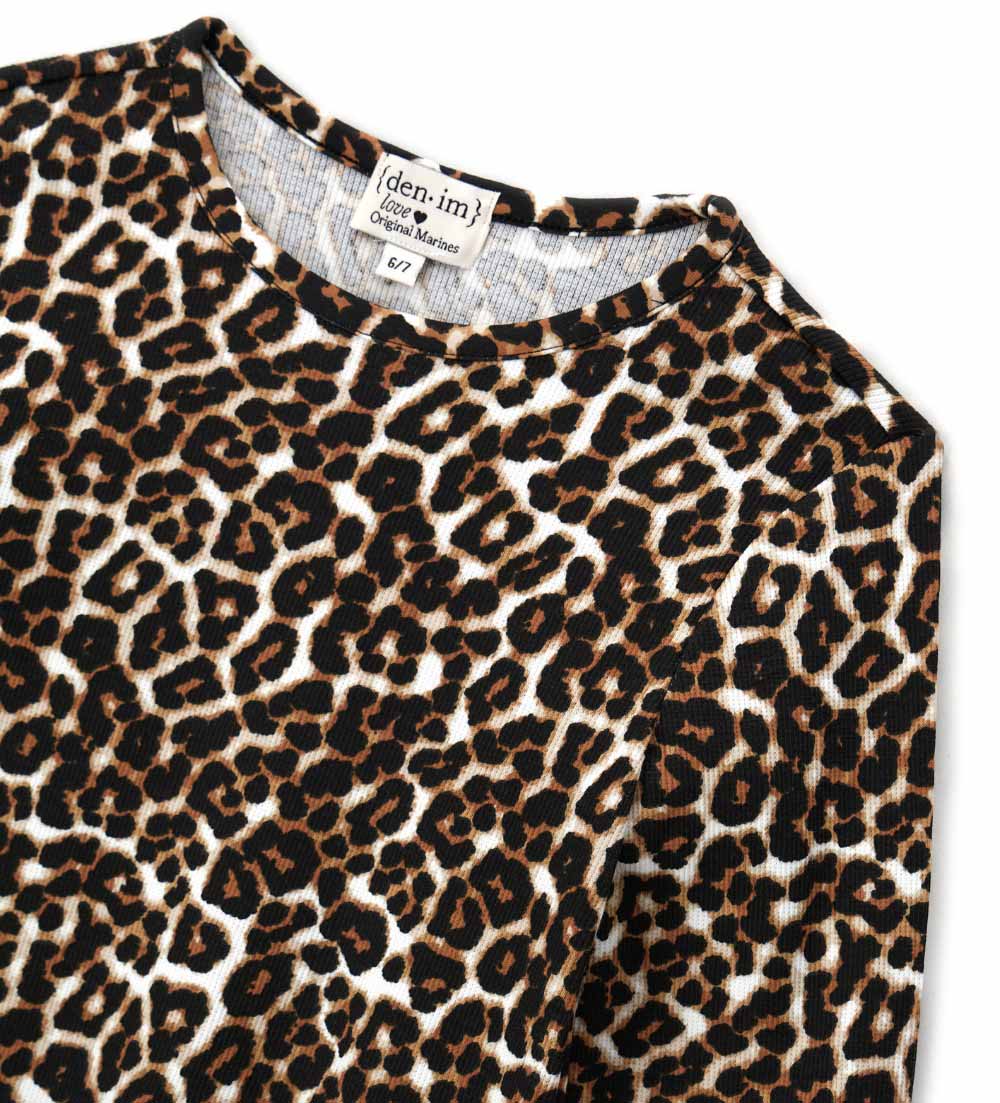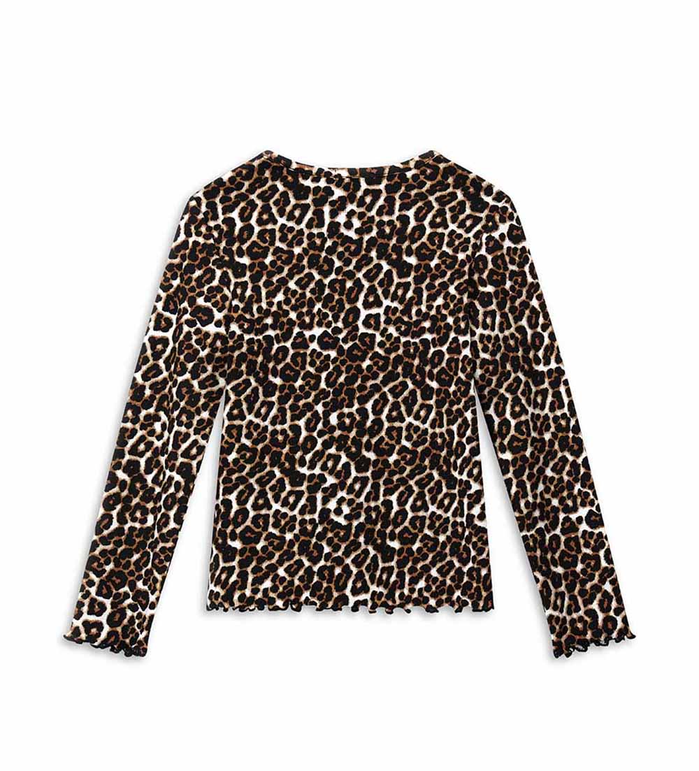 T-shirt en coton côtelé à manches longues avec col rond et imprimé animal parfait pour un look audacieux et unique.