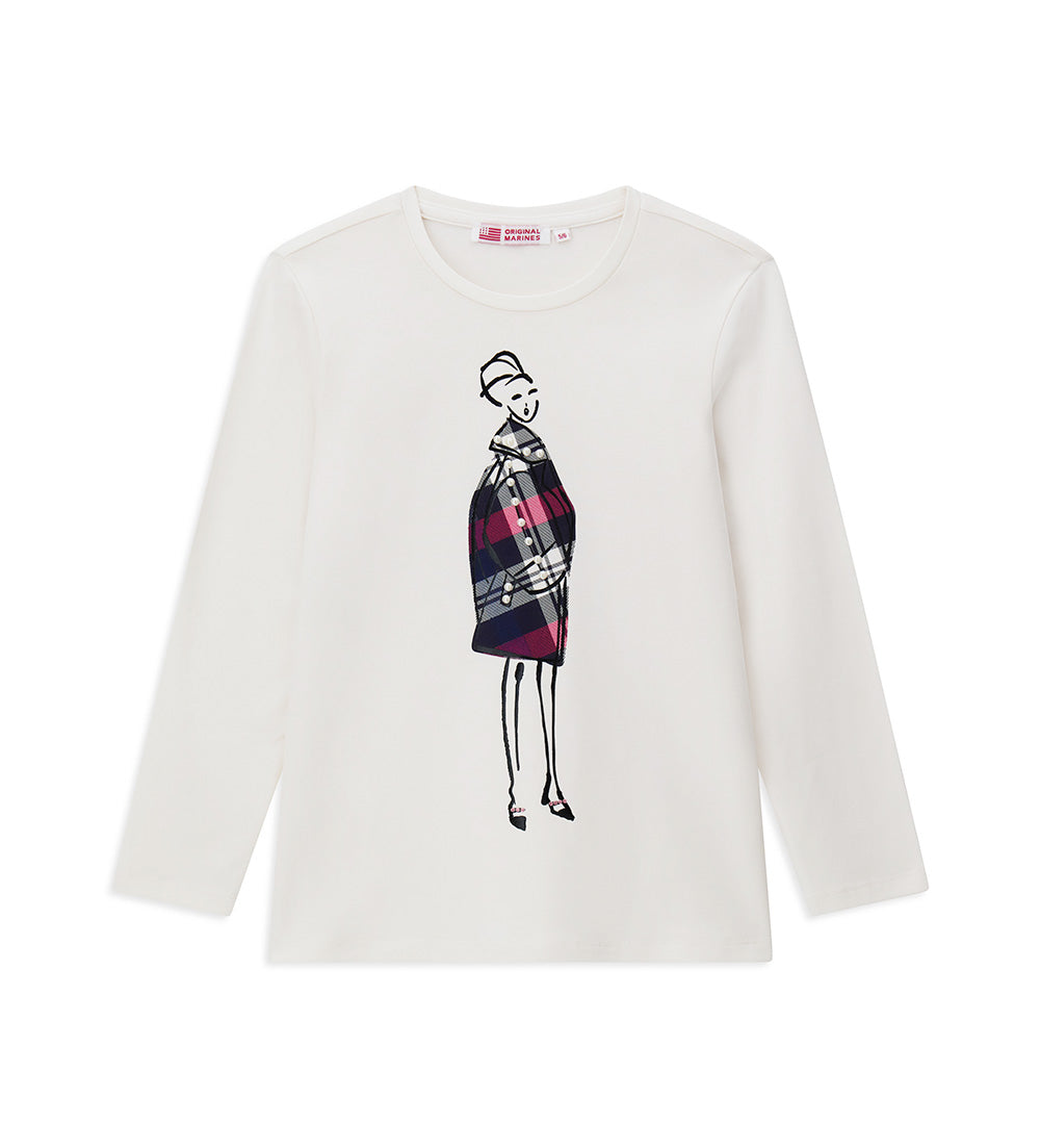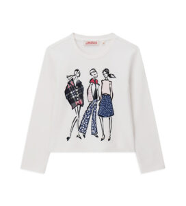 T-shirt à manches longues en coton extensible à col rond. Orné sur le devant d’imprimés et de détails appliqués en fausses demi-perles pour une touche d’originalité.