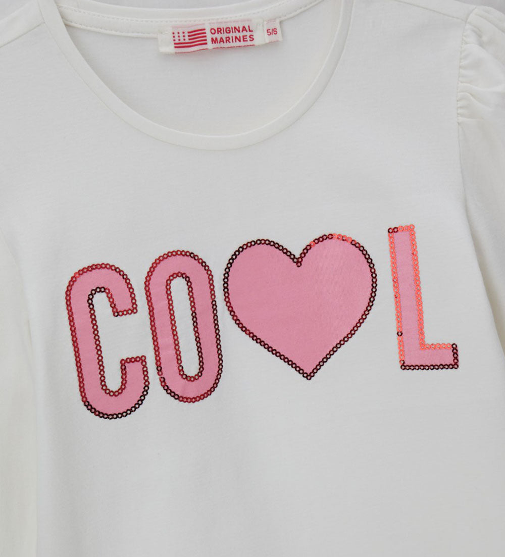 T-shirt en coton extensible à col rond et manches longues. L’imprimé et les paillettes scintillantes sur le devant apportent une touche de lumière irrésistible.