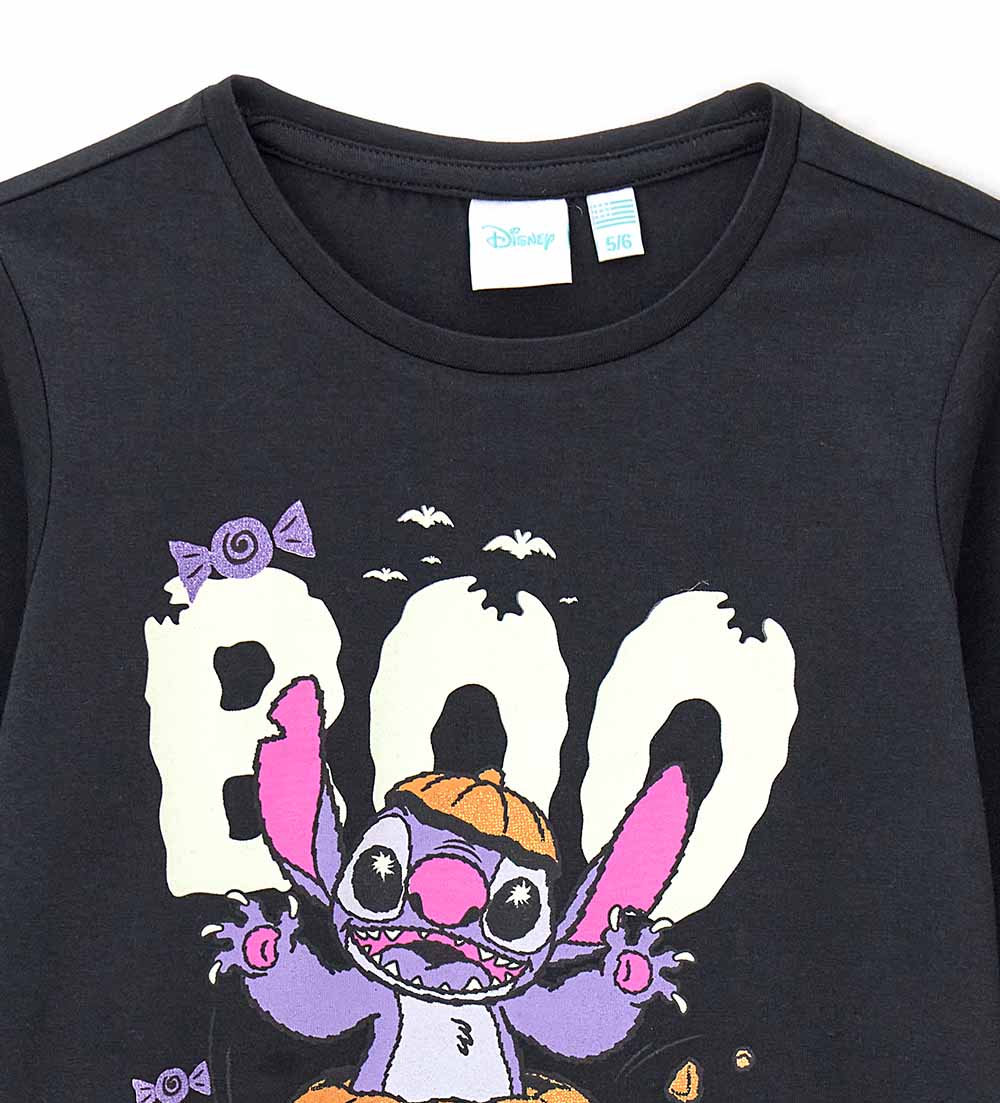 T-shirt Disney Stitch pour Halloween, en coton, manches longues et col rond. L’imprimé pailleté sur le devant brille dans le noir, pour une touche de magie. Parfait pour tous les fans de l’adorable extraterrestre !