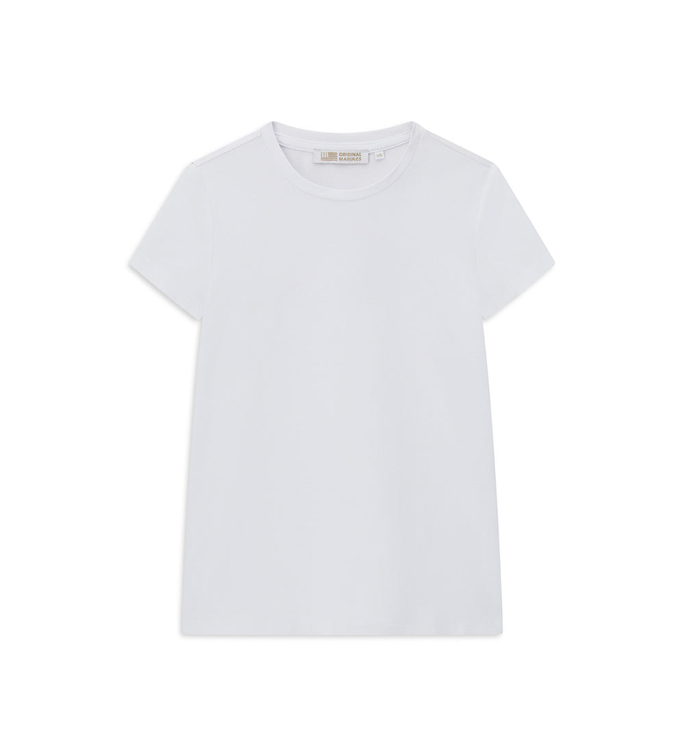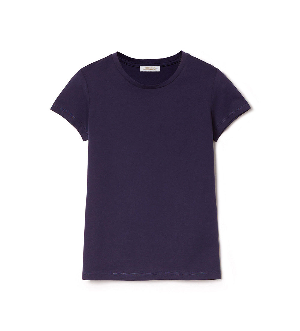 T-shirt à manches courtes en jersey de coton extensible, confortable et ajusté avec un col rond pour un look simple et polyvalent.
