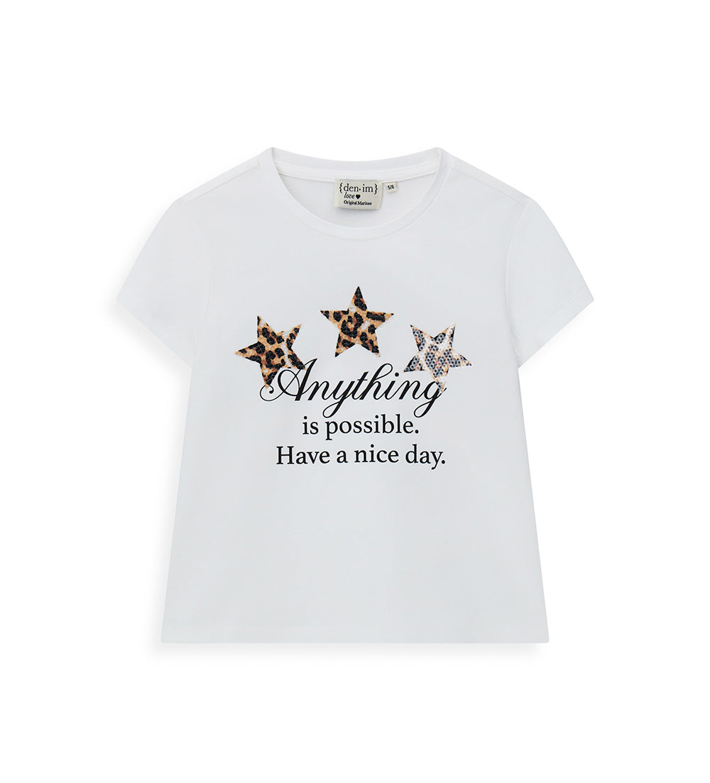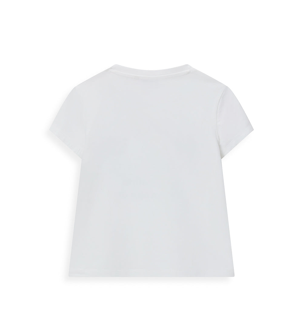 T-shirt en coton à manches courtes et col rond. Orné d’un imprimé et d’une application de paillettes transparentes sur le devant pour un look tendance et lumineux.