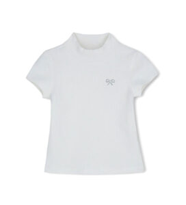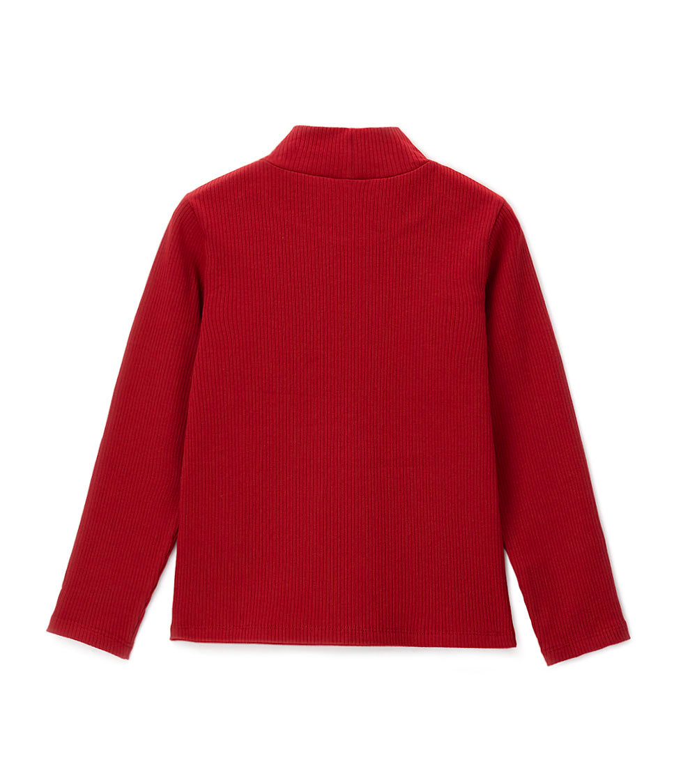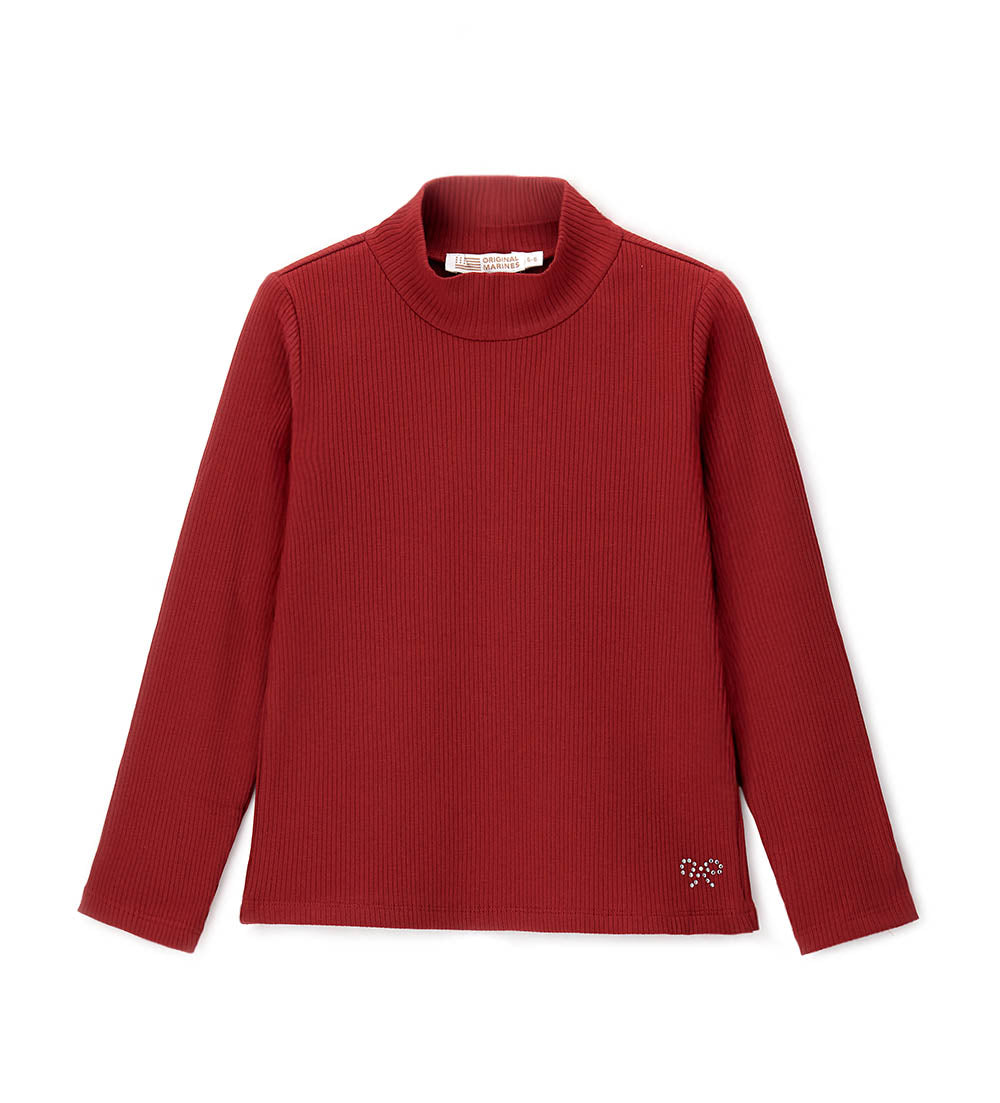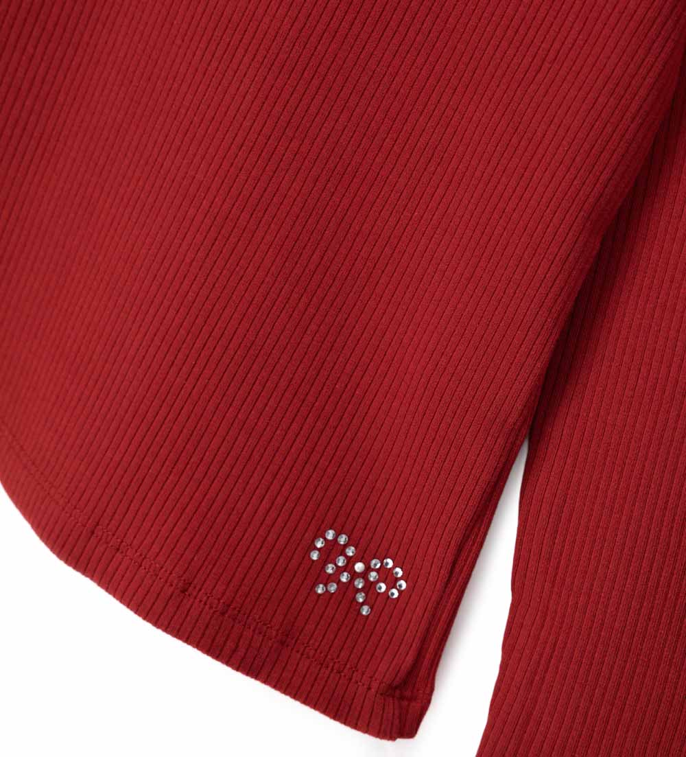 Pull à col roulé en coton côtelé à manches longues et application de strass sur le bas du devant. Un vêtement élégant et brillant, parfait pour un look à la fois confortable et tendance.