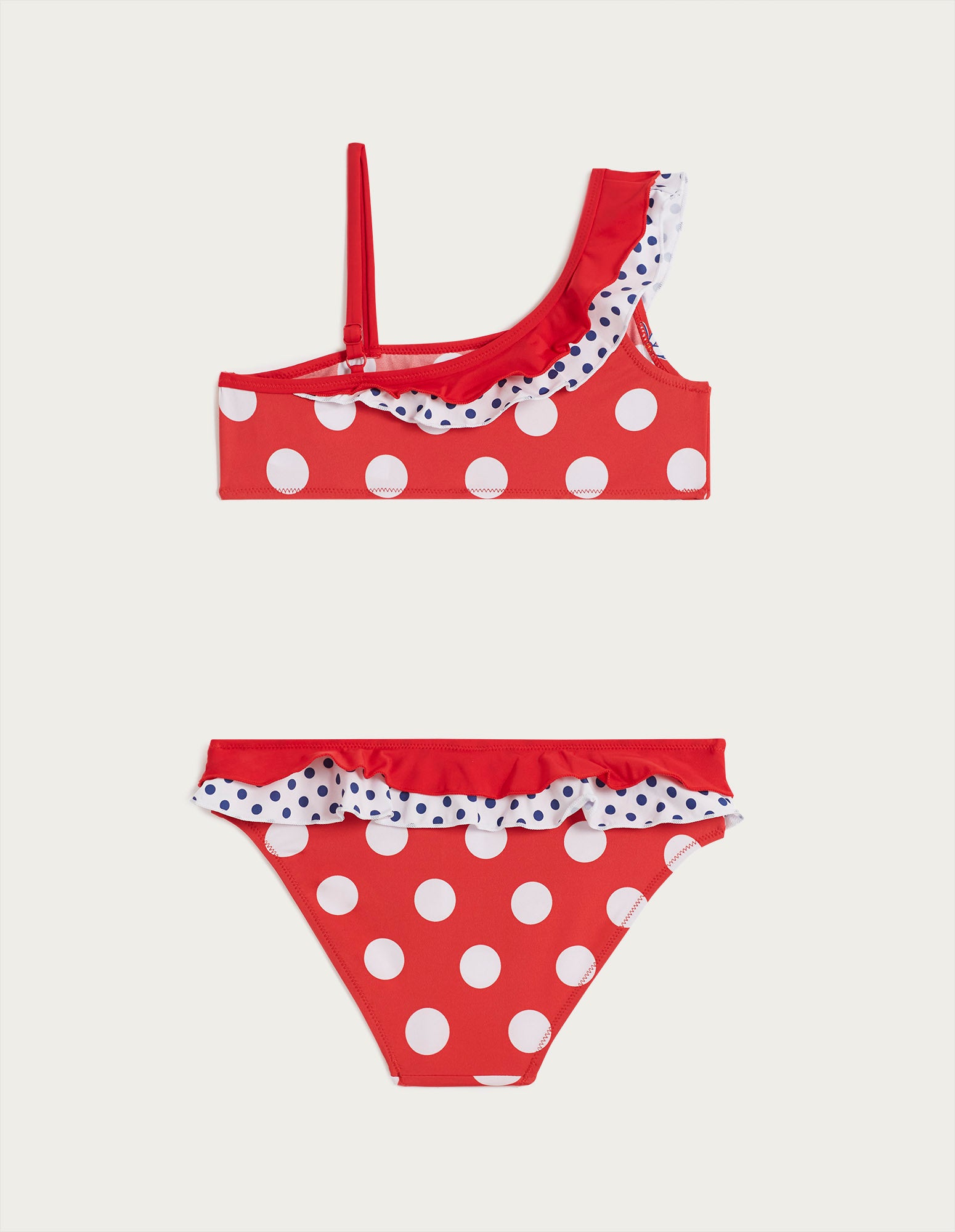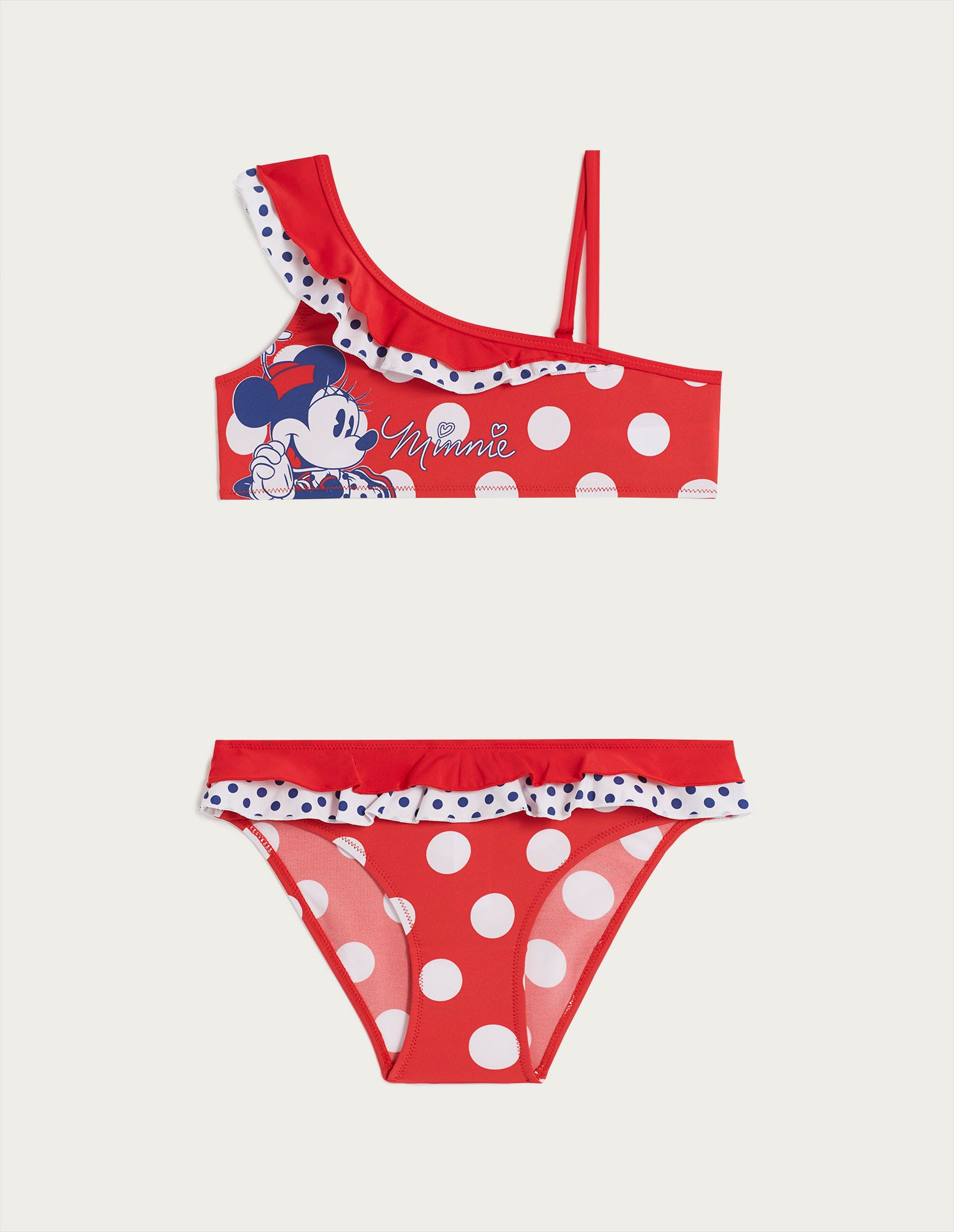 Découvrez la nouvelle ligne de maillots de bain inspirée de Minnie, l’adorable star de Disney®. Optez pour cet ensemble bikini super cool composé d’un bandeau et d’une culotte, confectionné dans un tissu très résistant et de qualité. Il accompagnera votre petite fille dans ses jeux quotidiens. Son imprimé emblématique à pois rouges et blancs et ses détails bleus lui assureront un look original et incomparable.