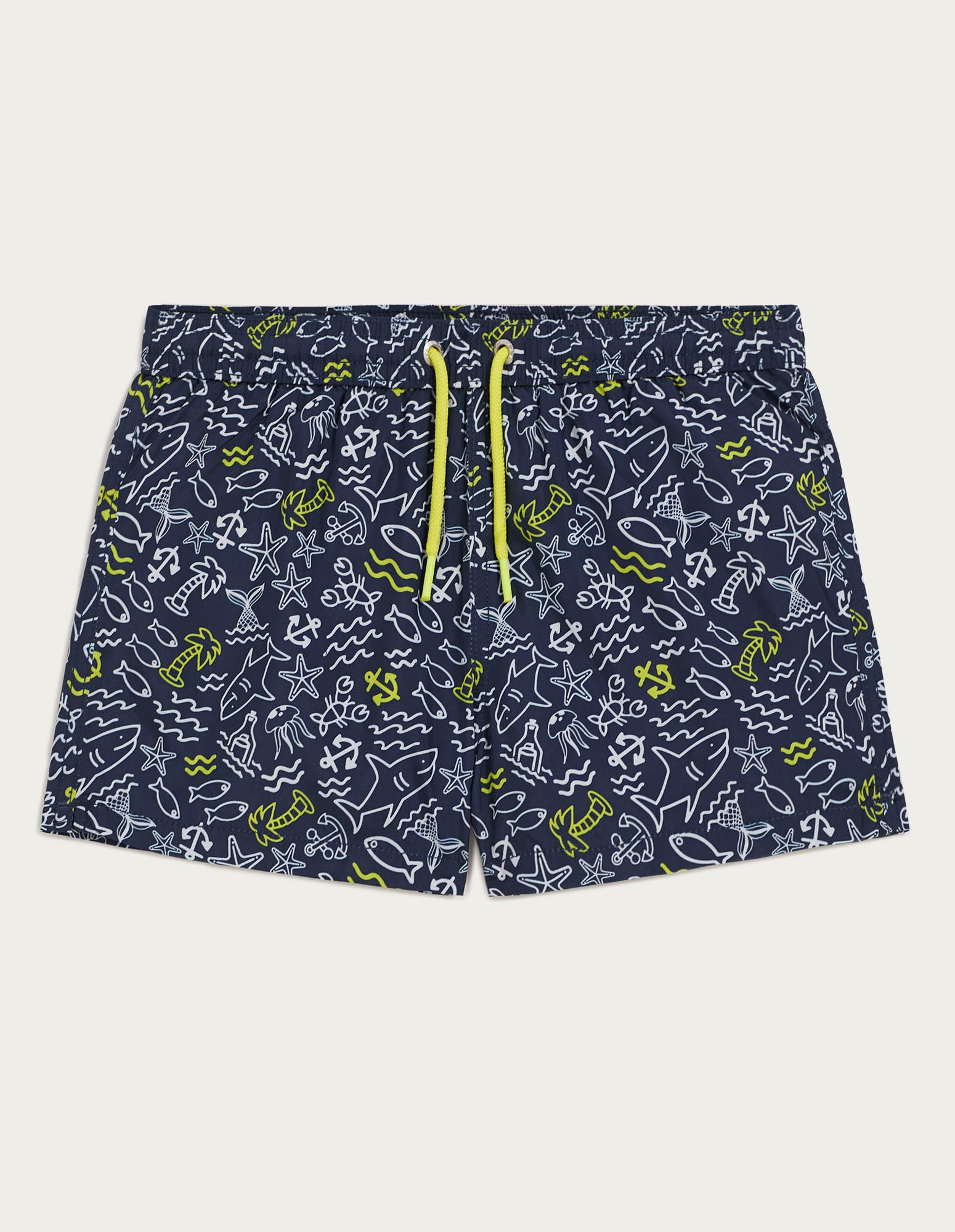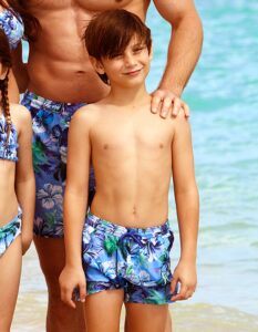 Affrontez l’été avec la ligne de vêtements et de maillots de bain Marina I. Polyvalents et tendance, ils s’adaptent aussi bien aux hommes qu’aux enfants. Ce maillot de bain pour garçon, compatible avec le modèle adulte, est idéal pour offrir à votre enfant une grande liberté de mouvement lors des longues journées à la plage. Fabriqué en toile technique polyester, il est doté d’une taille ajustable et de grandes poches. Son imprimé estival et ludique rendra chaque tenue unique.