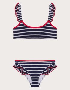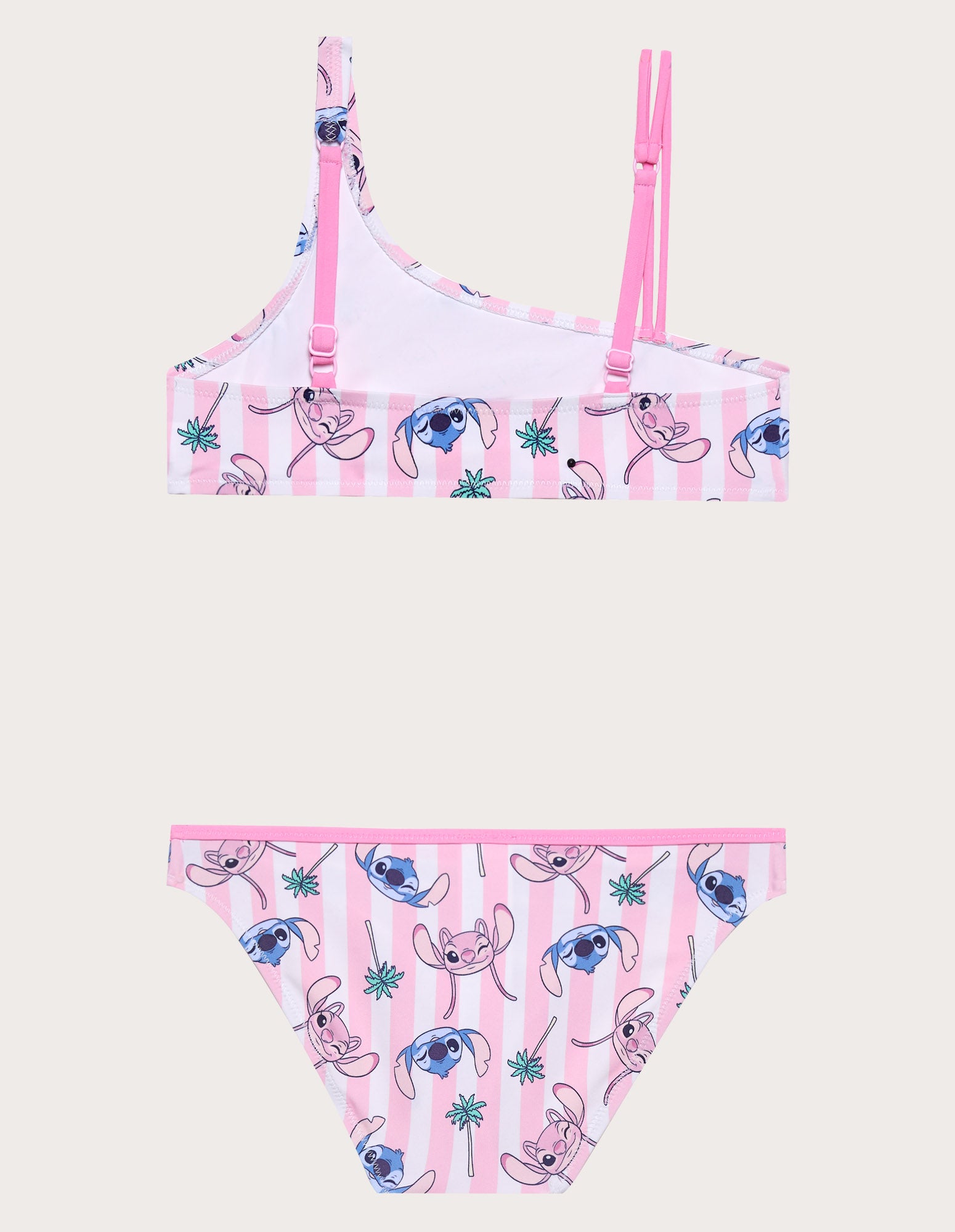 Le bikini fille Stitch, composé d’une brassière et d’un slip, est un ensemble deux pièces d’été confectionné dans un tissu léger et confortable. Le haut asymétrique est doté d’une double bretelle réglable et d’un fond rayé rose et blanc ludique, orné d’imprimés Stitch et Angel. Le slip assorti offre un ajustement parfait et une grande liberté de mouvement, idéal pour jouer à la plage ou à la piscine.