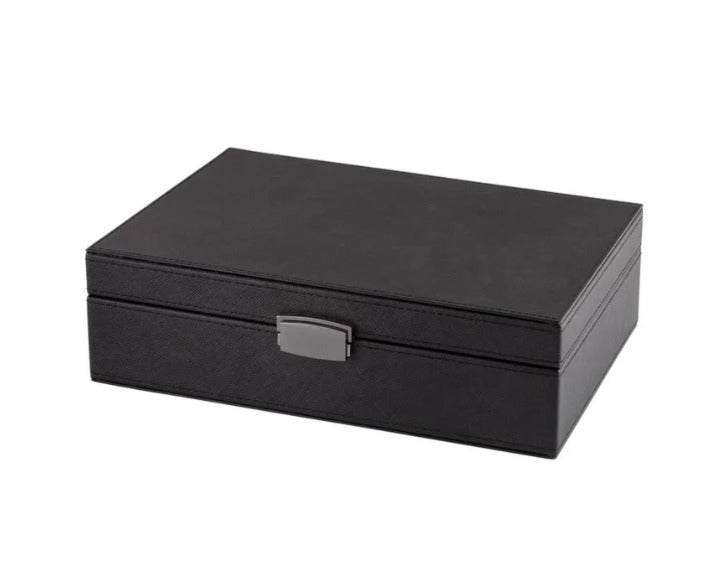 Il peut contenir 10 montres, réparties dans des compartiments séparés, et dispose d’une fermeture à bouton.