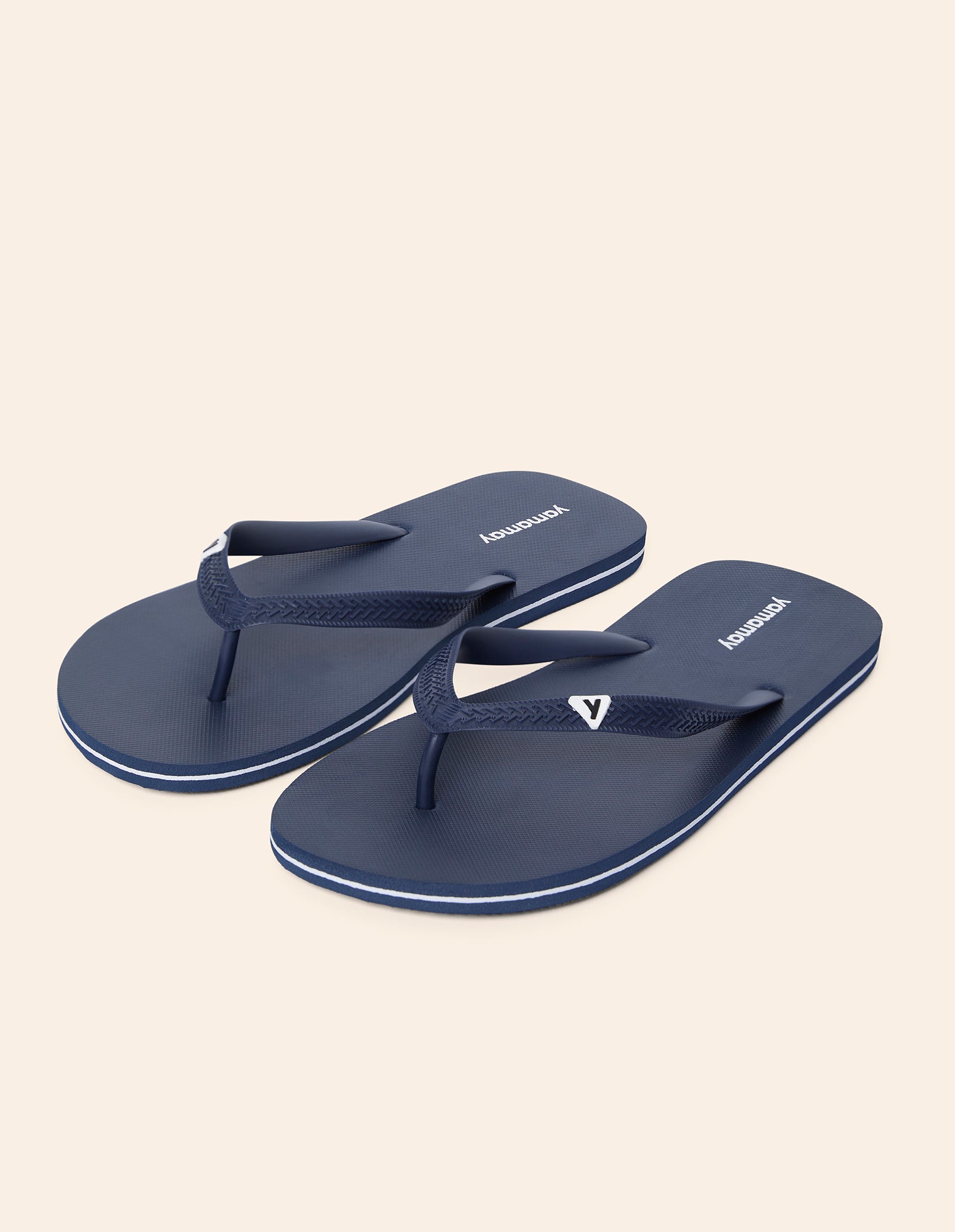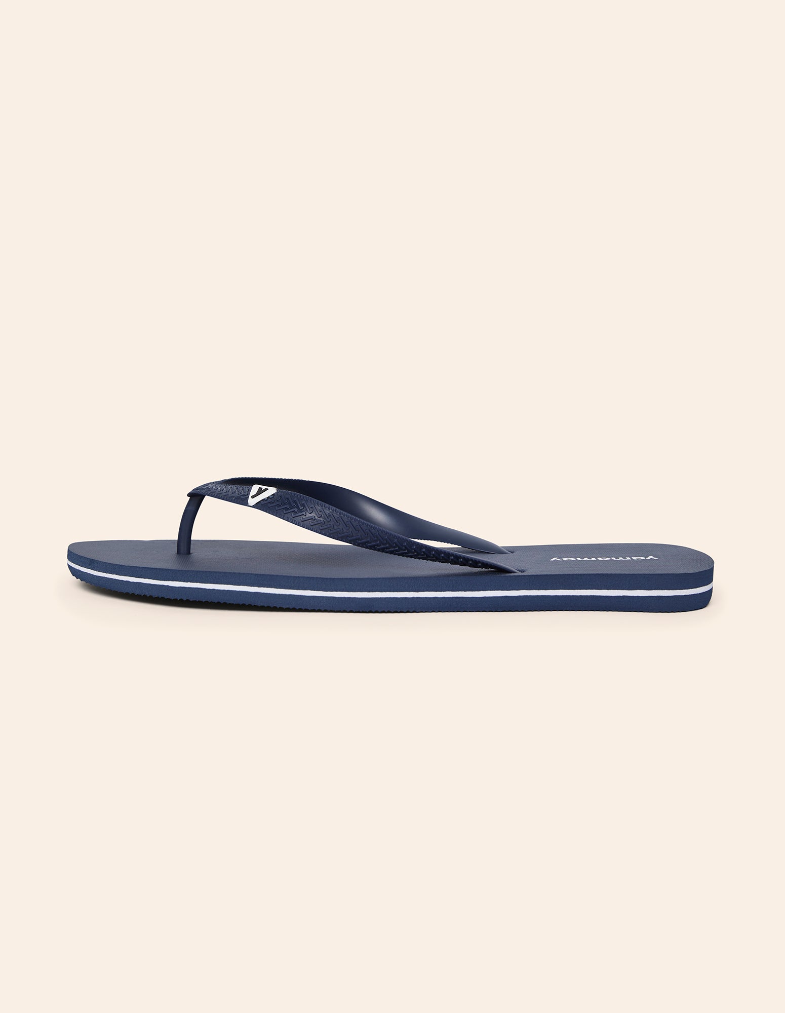 Tongs bleues pour homme en plastique léger. Logo Yamamay en relief sur la bride. Disponibles en trois tailles.