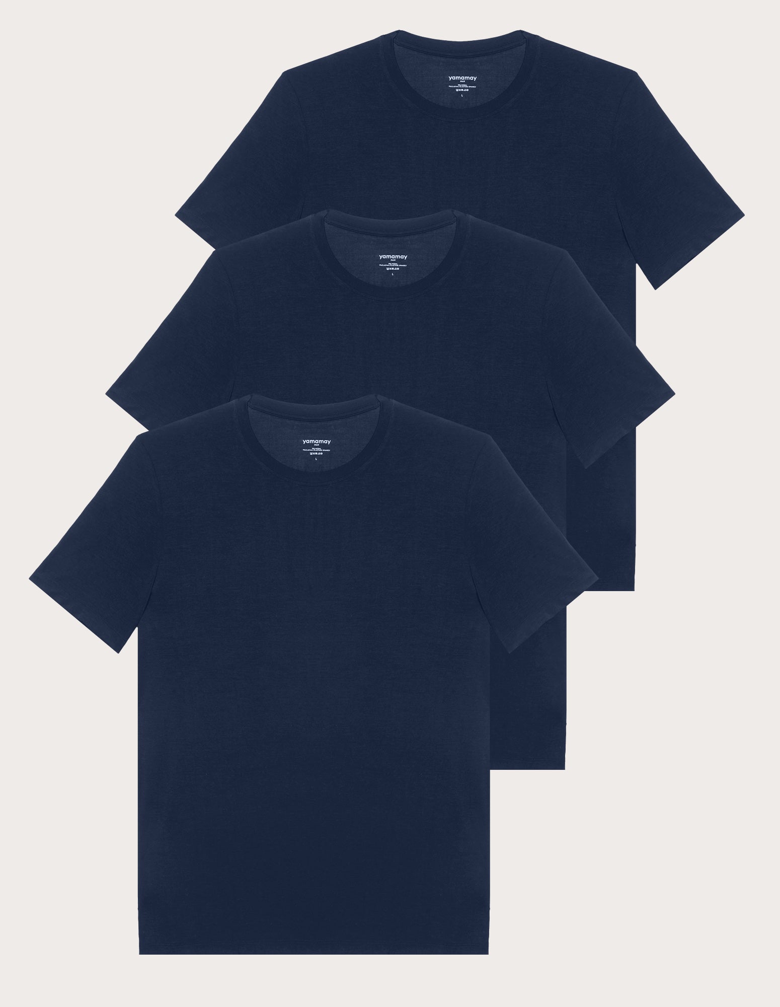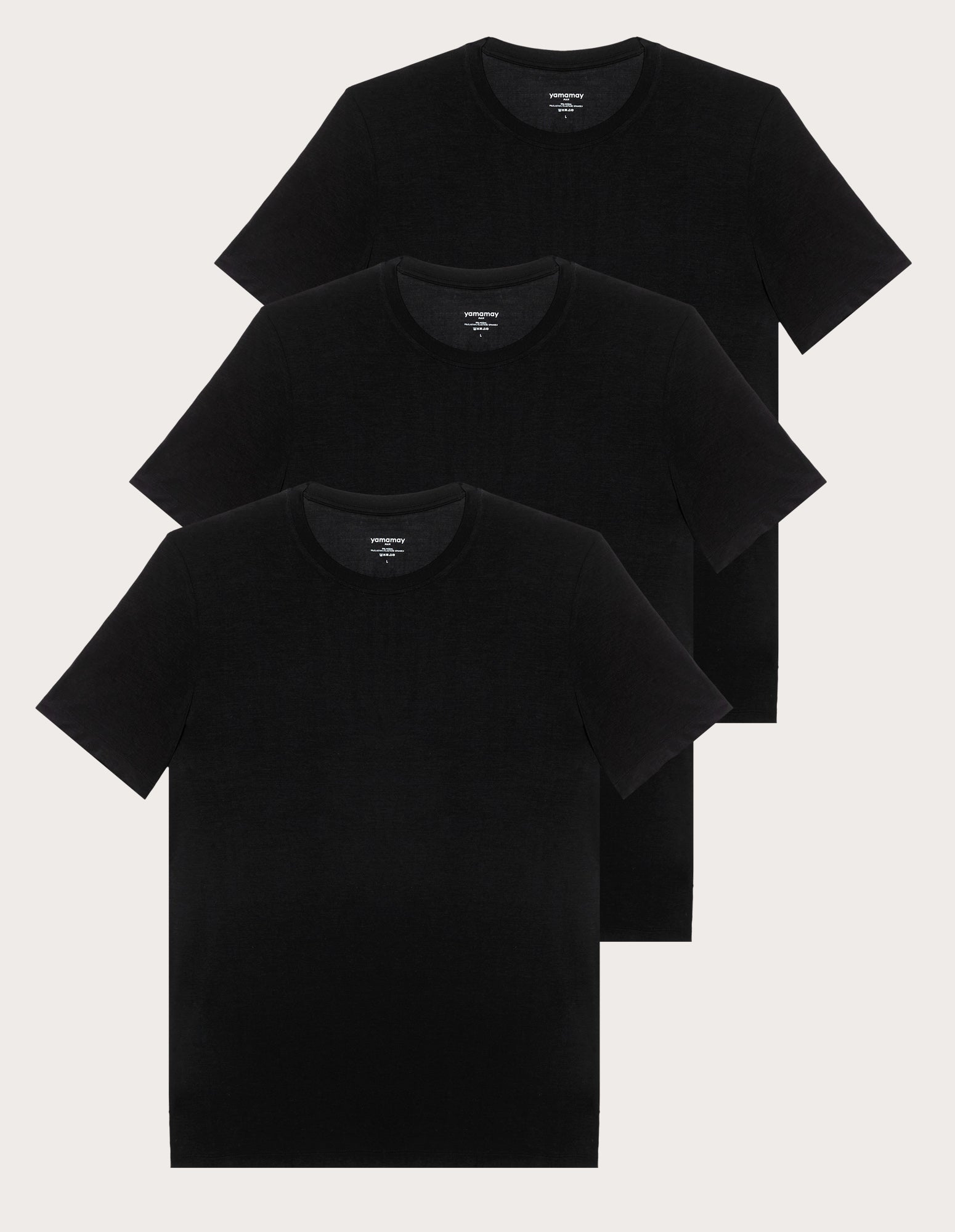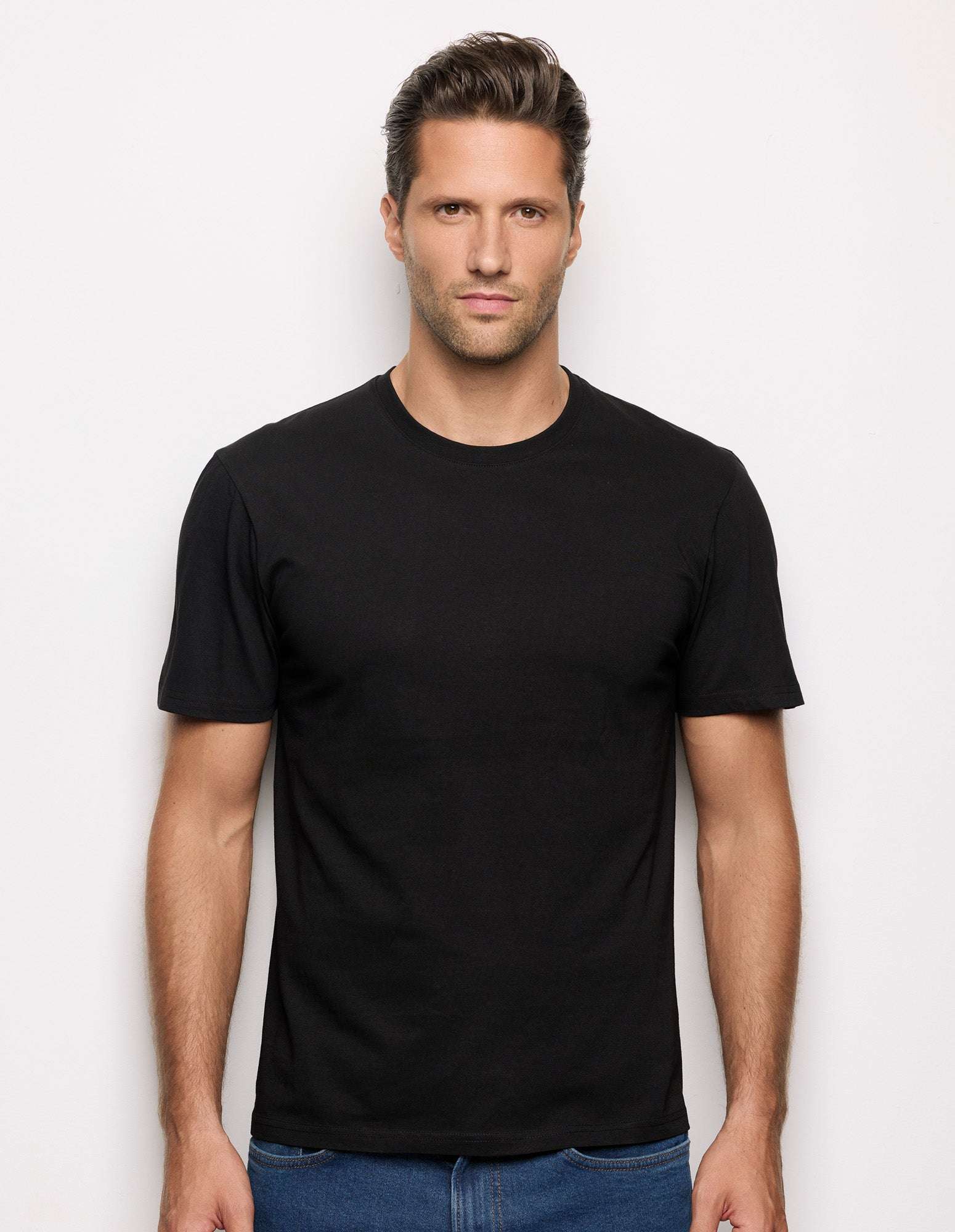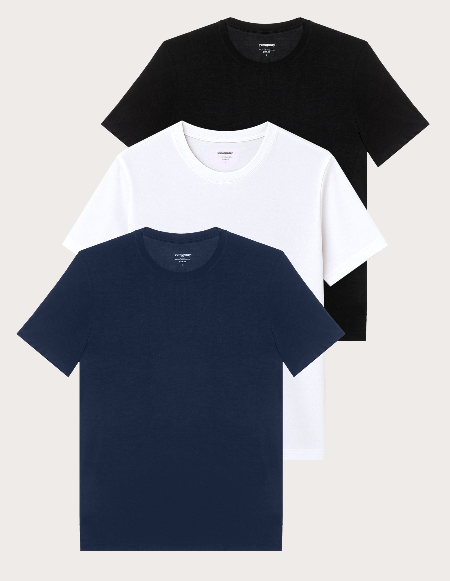 T-shirts homme à manches courtes en coton doux, avec un col ras du cou classique. Idéals comme sous-vêtements ou comme t-shirt basique pour les loisirs. Disponibles en lots de 3 pièces de la même couleur : blanc, noir et bleu.