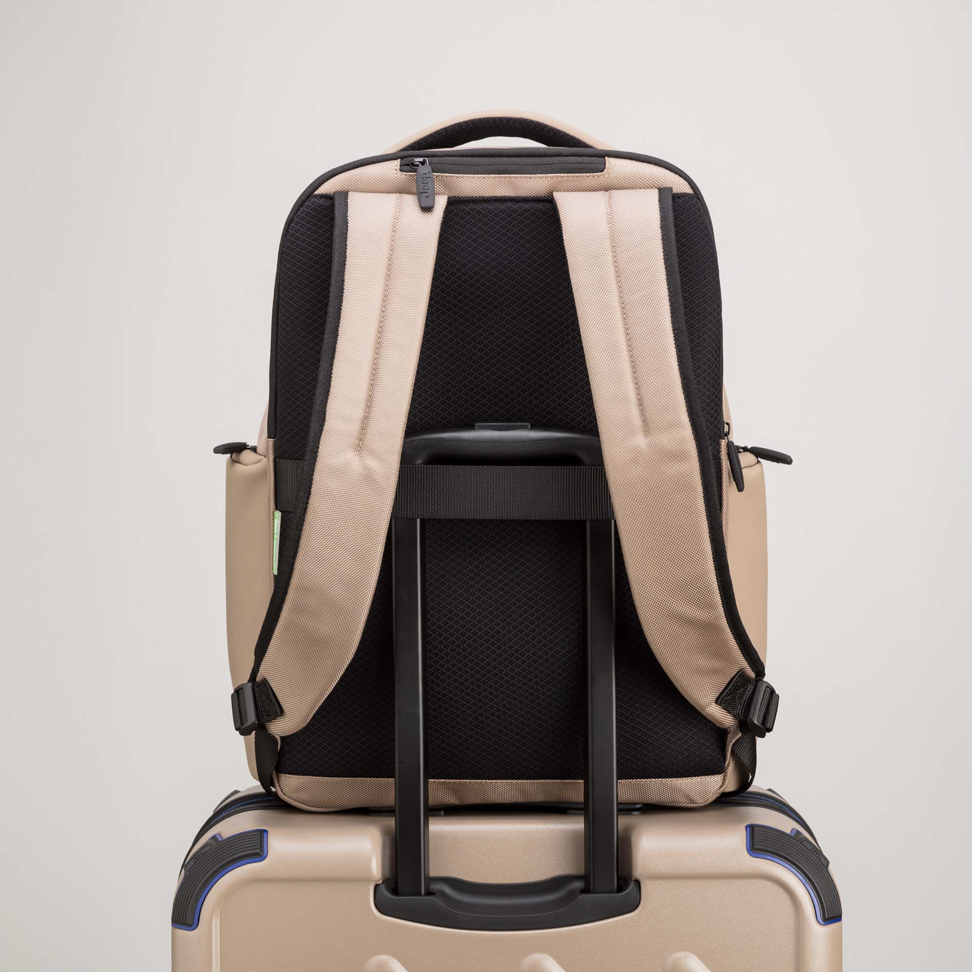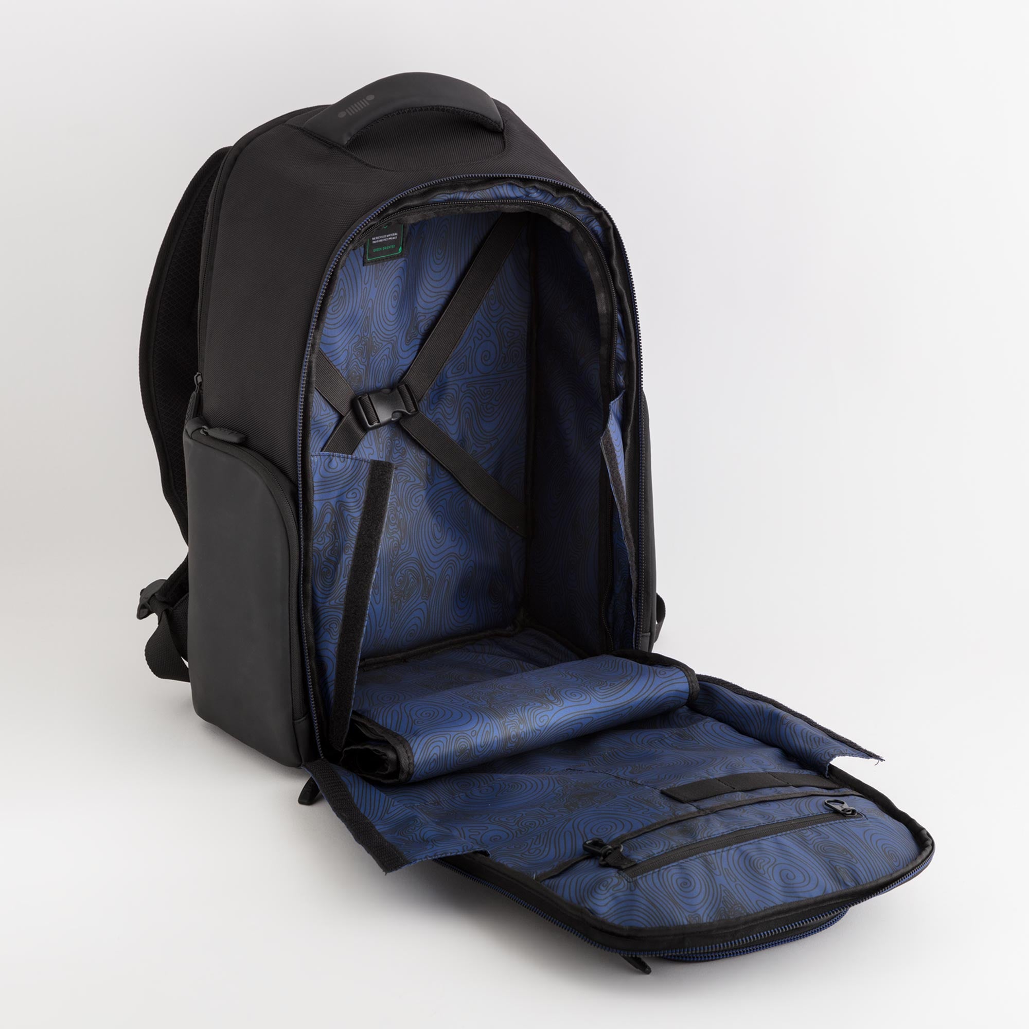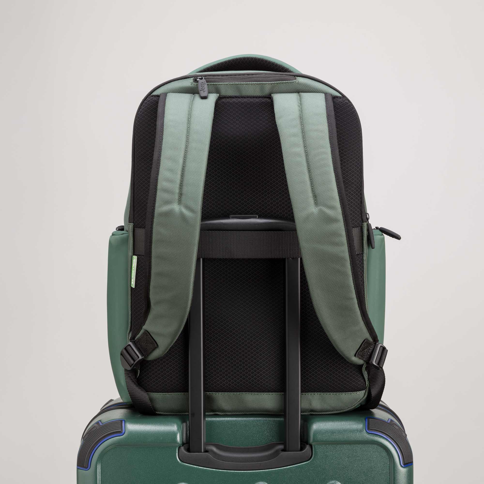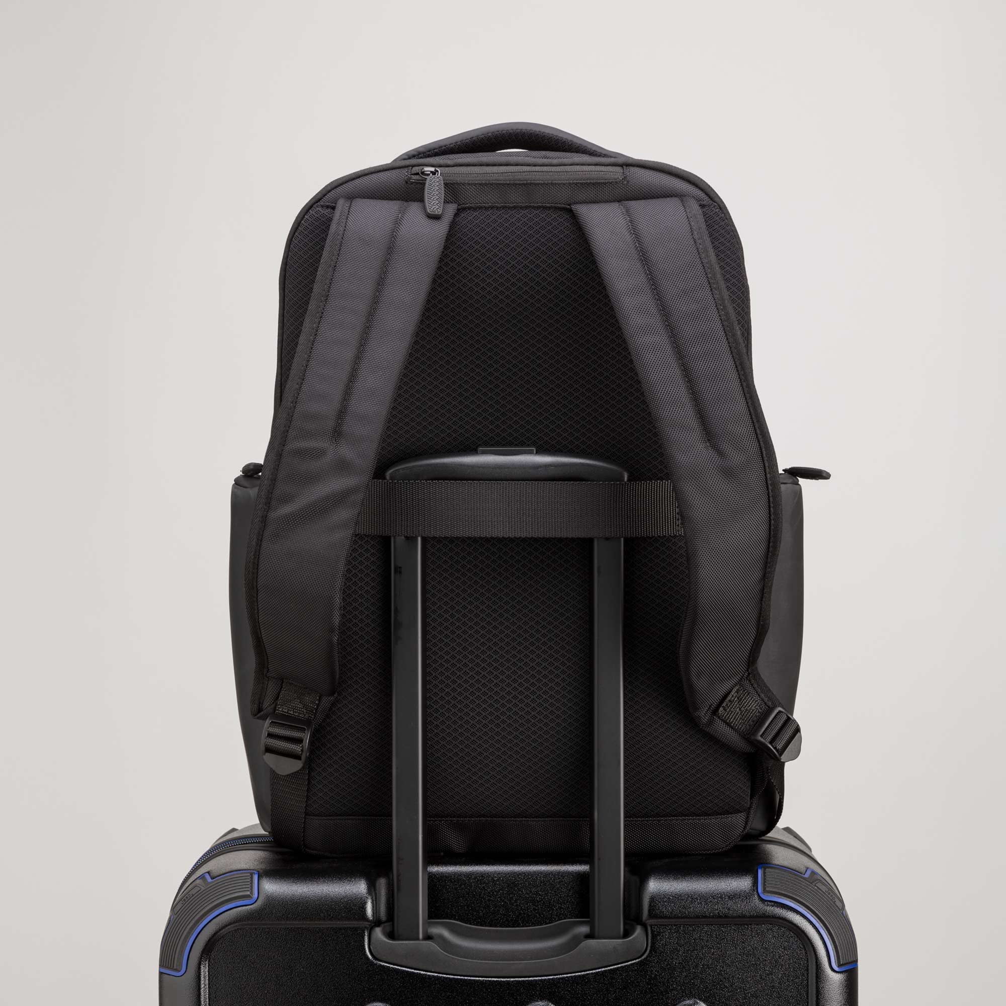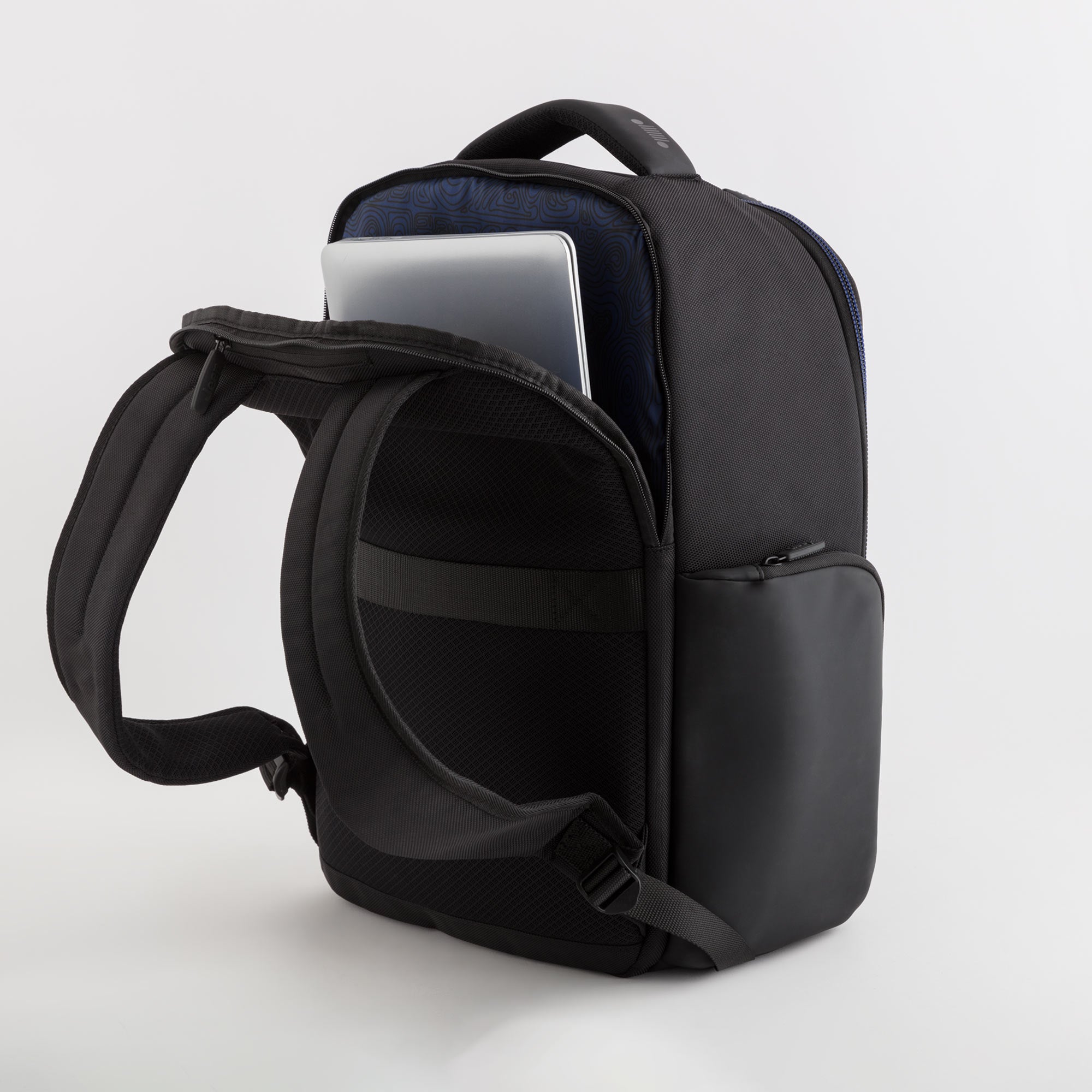 Ce modèle est doté d’une fermeture zippée, de plusieurs poches intérieures et extérieures, de bretelles réglables, d’un dos respirant, d’une bande dorsale permettant de l’attacher à un trolley et d’un compartiment pour ordinateur portable jusqu’à 17″. Polyester 100 %.