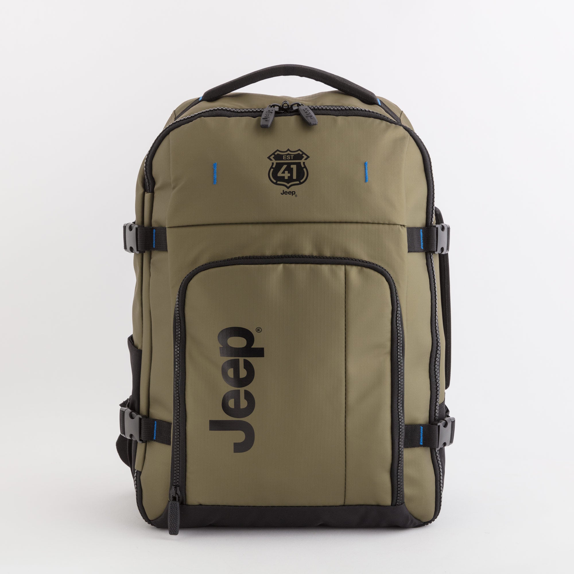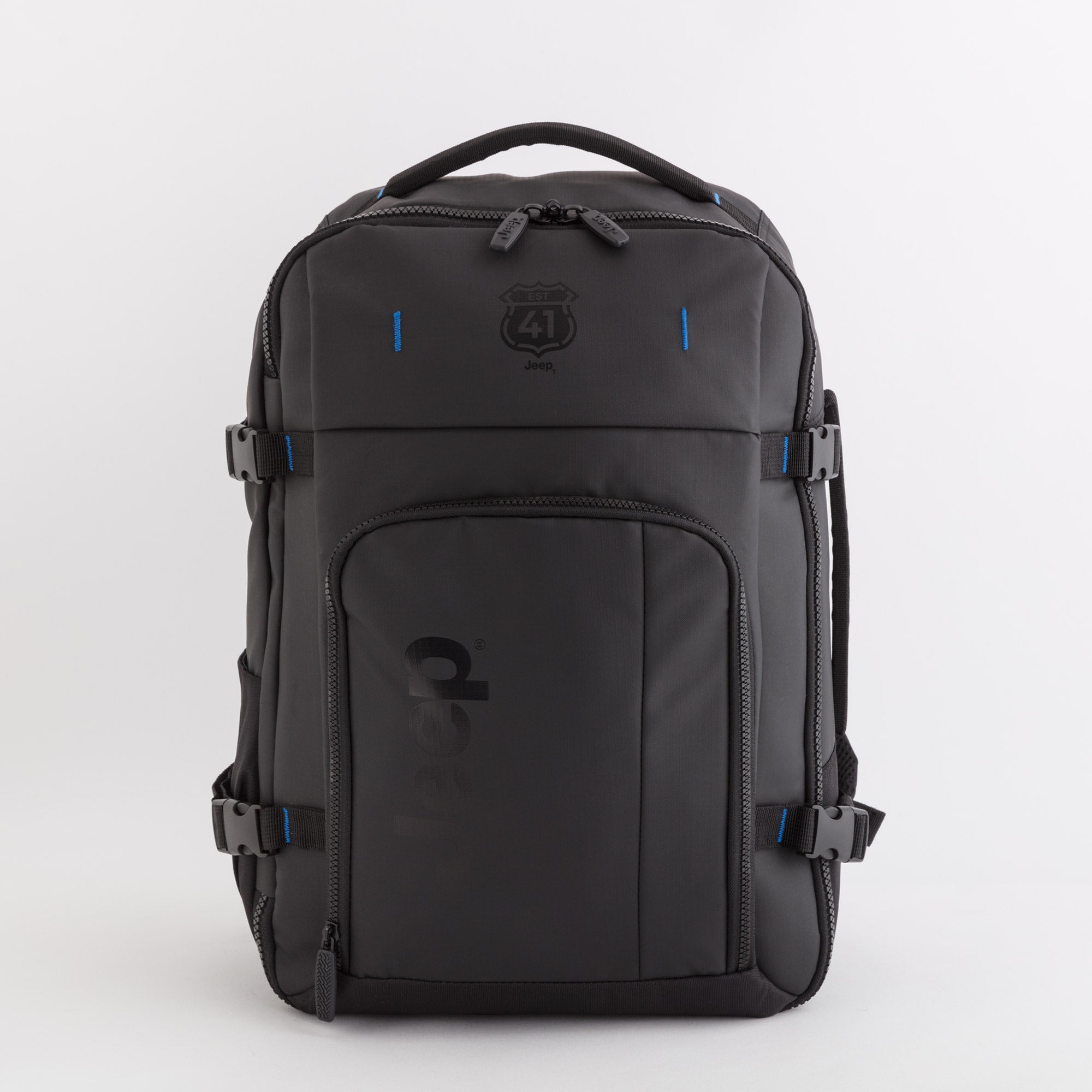 Sac à dos de la ligne Midtown Jeep de Carpisa en polyester texturé légèrement réfléchissant.