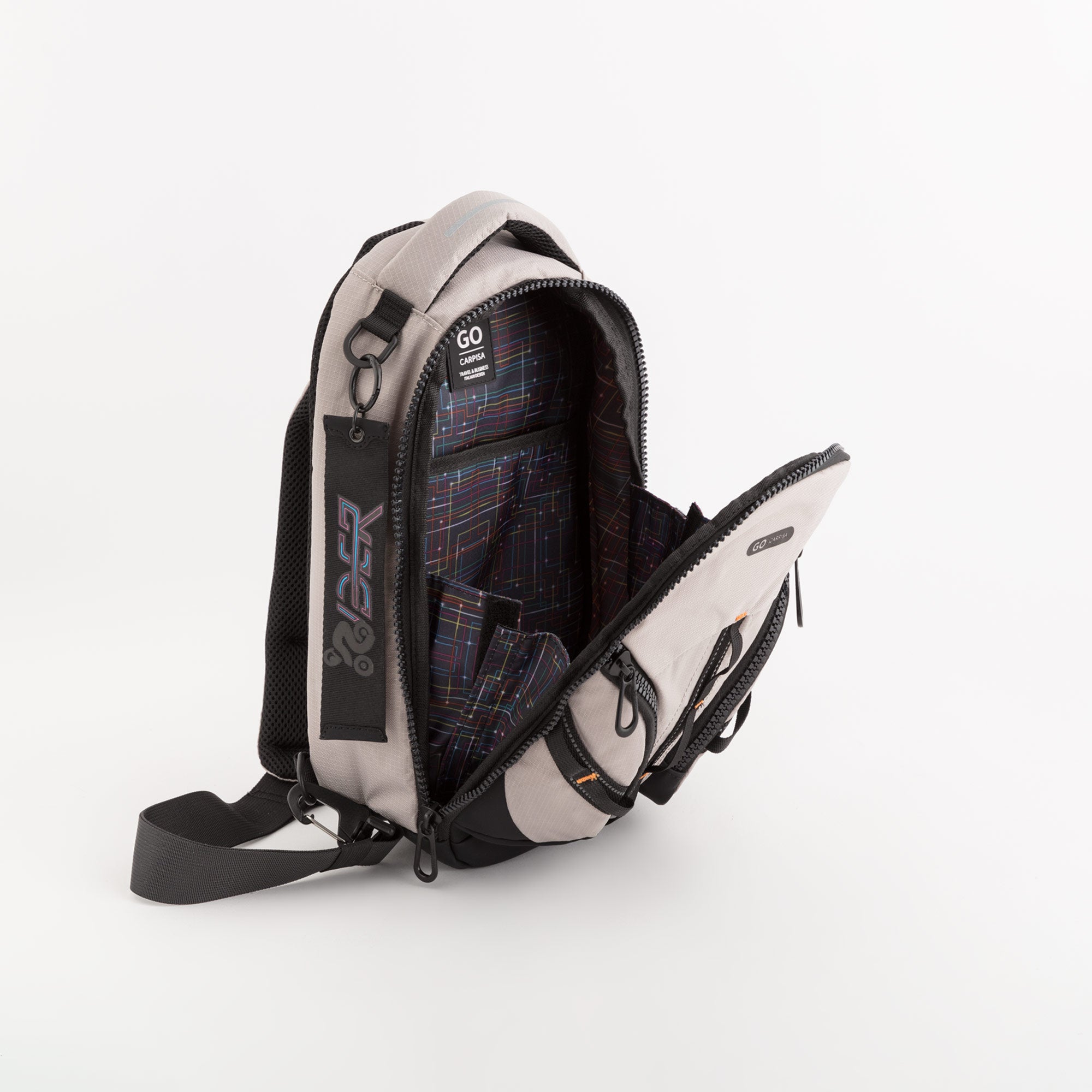 Sac bandoulière simple de la ligne City Rider Go de Carpisa, fabriqué en nylon résistant avec une texture Rip Stop. Sa structure ergonomique répartit uniformément le poids, réduisant ainsi les tensions et les douleurs. Les trous d’aération assurent une respirabilité optimale, gardant votre dos au frais et au sec même pendant les journées les plus intenses. Doté d’une fermeture zippée, il dispose de nombreuses poches intérieures pour mieux organiser vos affaires. Modèle caractérisé par des empiècements en tissu enduit et des détails réfléchissants, pour un look sportif et jeune. Dimensions : 12 x 23 x 35 cm.