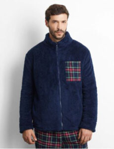 Veste en fausse fourrure chaude et douce. Texture à carreaux sur des tons bleus. Fermeture boutonnée ton sur ton. Col confortable et deux grandes poches devant. Coupe confortable. Parfaite pour les tenues les plus décontractées. Poignets ajustables par un bouton.