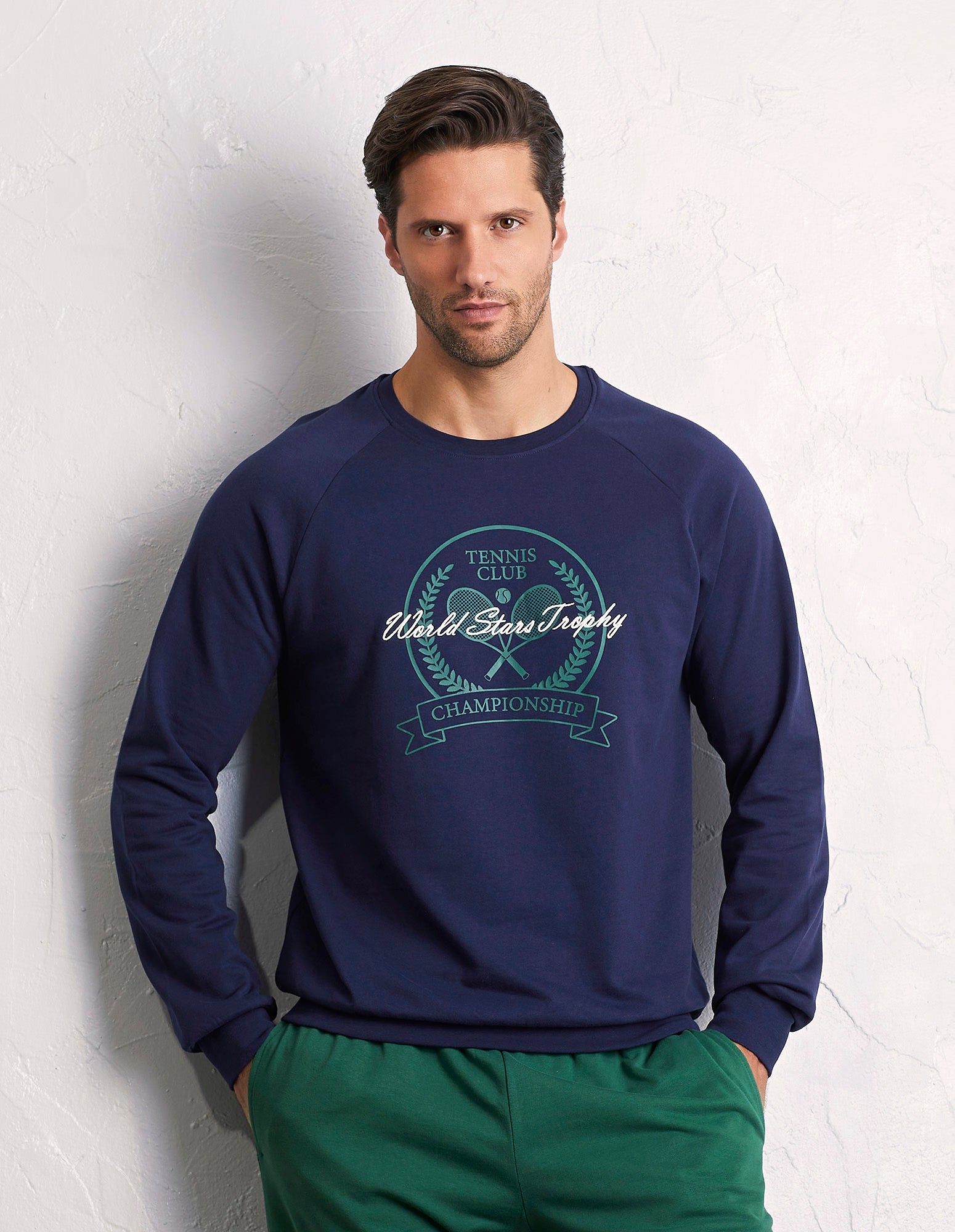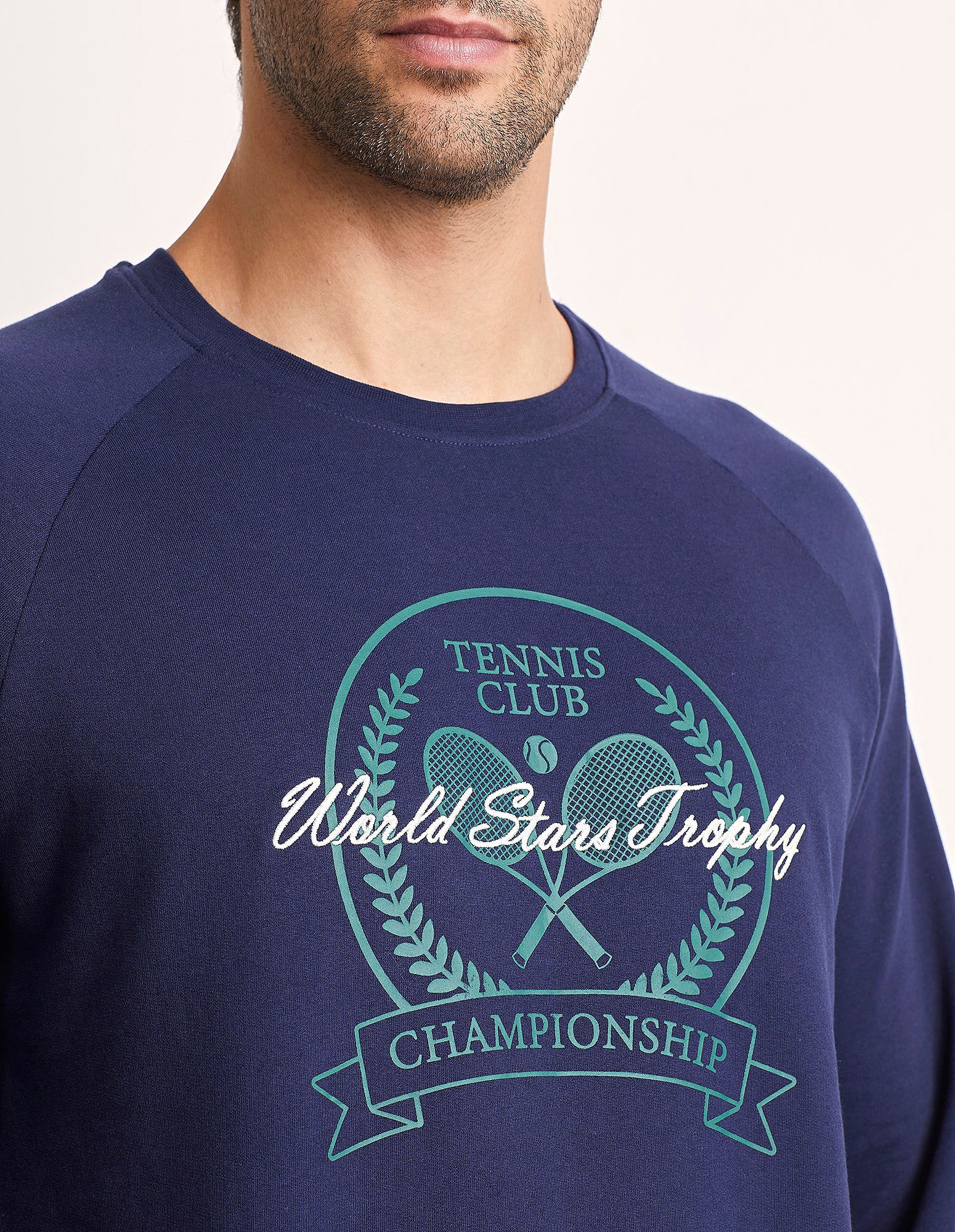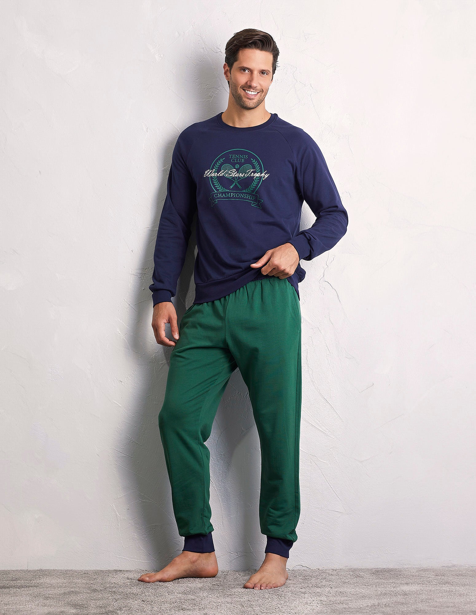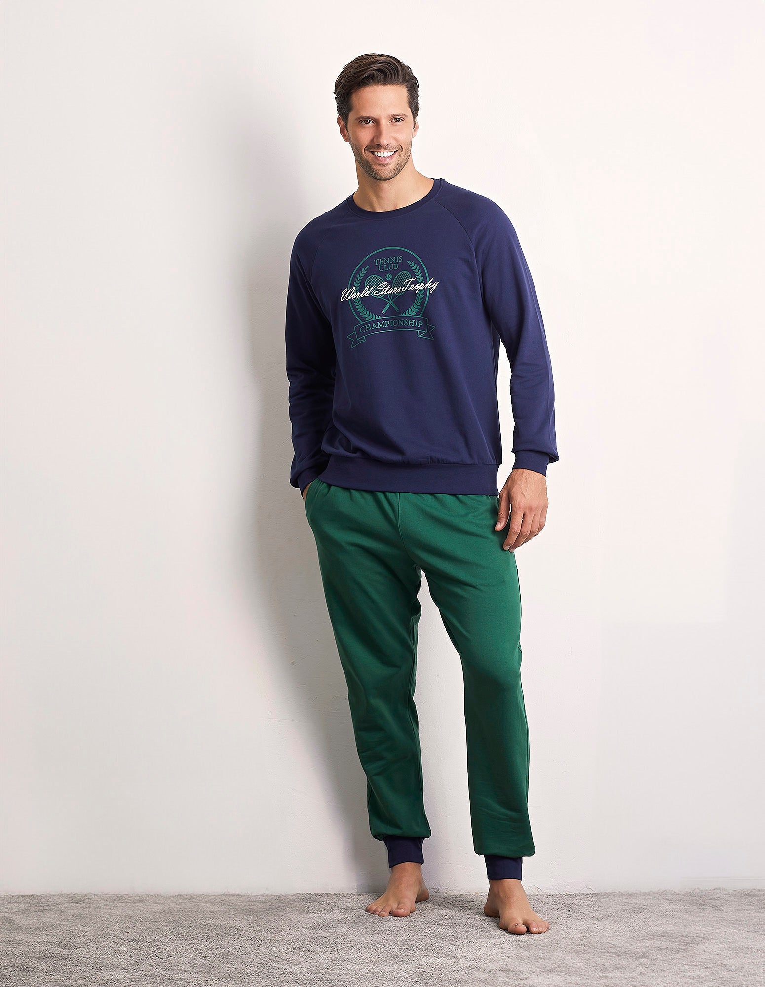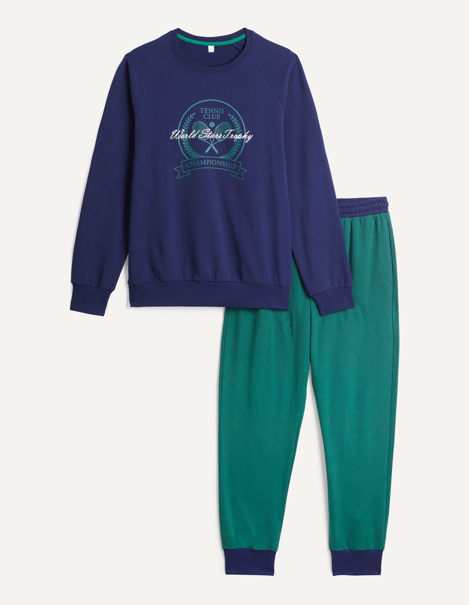 Rehaussez votre style et ajoutez une touche d’élégance avec le pyjama homme de la collection Tennis Club. Offrez-vous une nuit de rêve et de liberté grâce à ce magnifique pyjama. Confectionné en polaire brossée, il vous tient chaud et vous offre une sensation de bien-être pendant votre sommeil. L’élégant bleu nuit du t-shirt s’accorde parfaitement avec le vert moderne du pantalon. La taille élastique et les revers aux chevilles assurent un ajustement parfait et un confort unique. Le pyjama idéal pour les amateurs de tennis, mais pas seulement ! Ajoutez une pièce de qualité et ultra tendance à votre garde-robe.