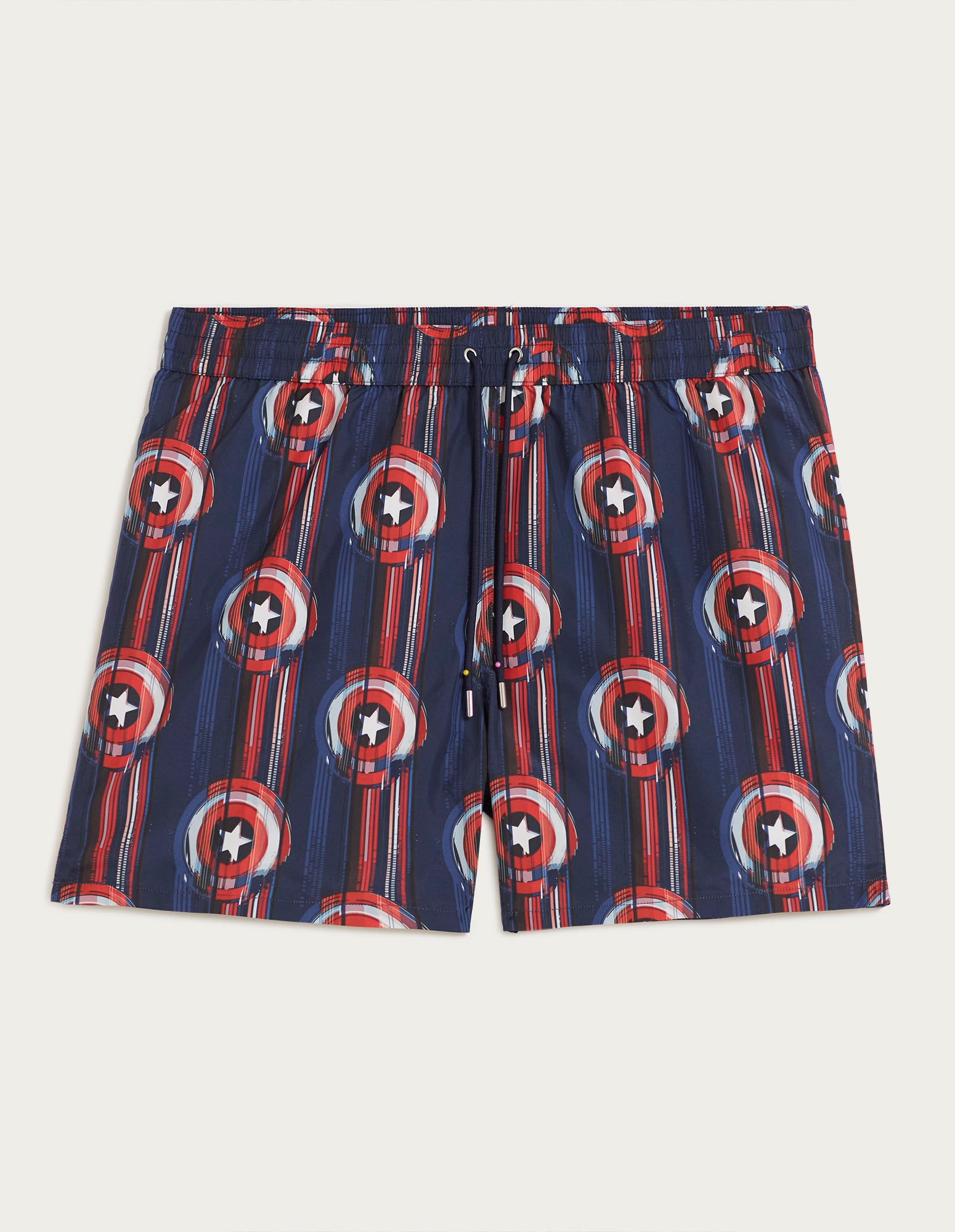 Affrontez l’été avec la nouvelle collection de maillots de bain inspirée du héros Marvel© Captain America ! Optez pour ce short de bain au style cartoon pour des journées parfaites à la plage et à la piscine. Confort et praticité sont réunis grâce à une taille élastique ajustable et une poche arrière à fermeture auto-agrippante.