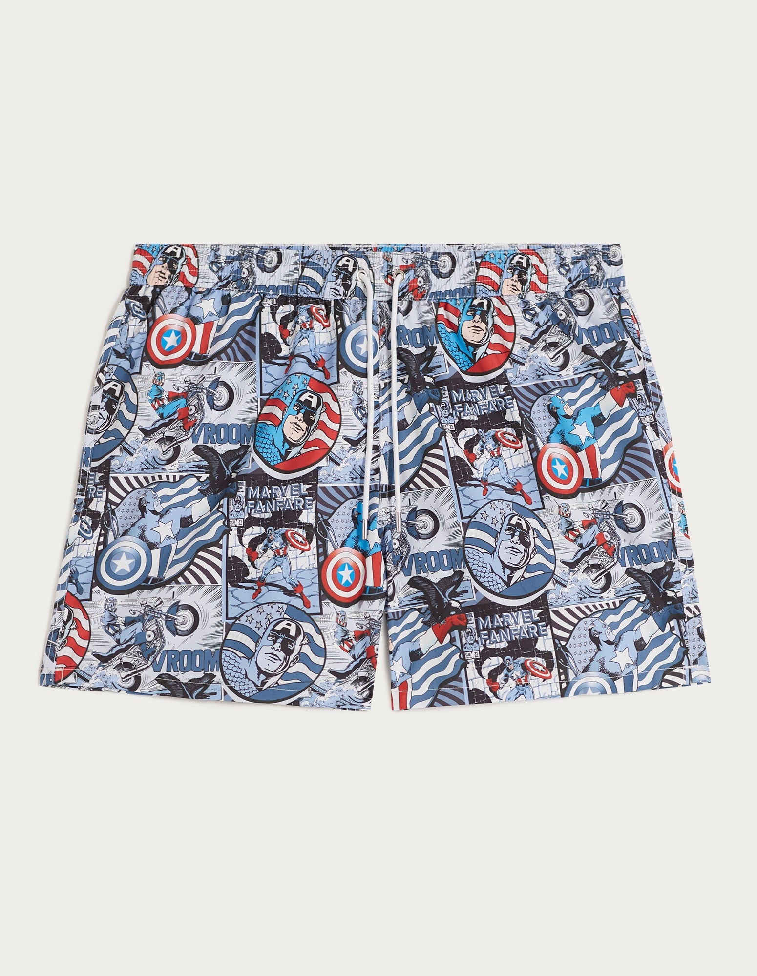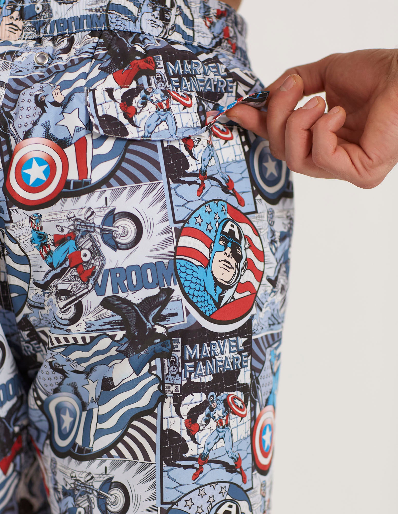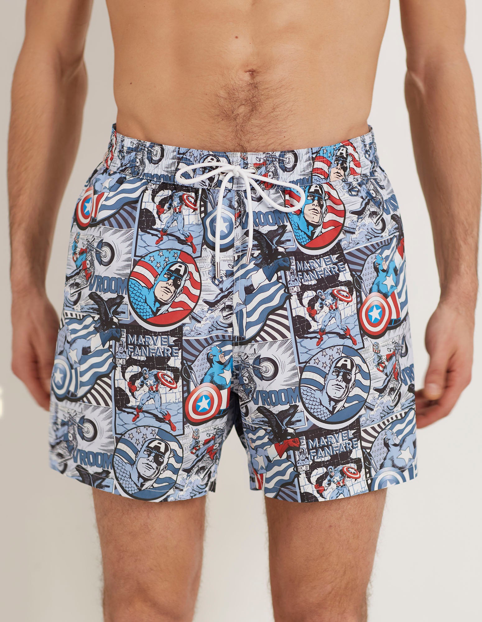Affrontez l’été avec la nouvelle collection de maillots de bain inspirée du héros Marvel© Captain America ! Optez pour ce short de bain au style cartoon pour des journées parfaites à la plage et à la piscine. Confort et praticité sont réunis grâce à une taille élastique ajustable et une poche arrière à fermeture auto-agrippante. Le motif est assorti au modèle enfant.