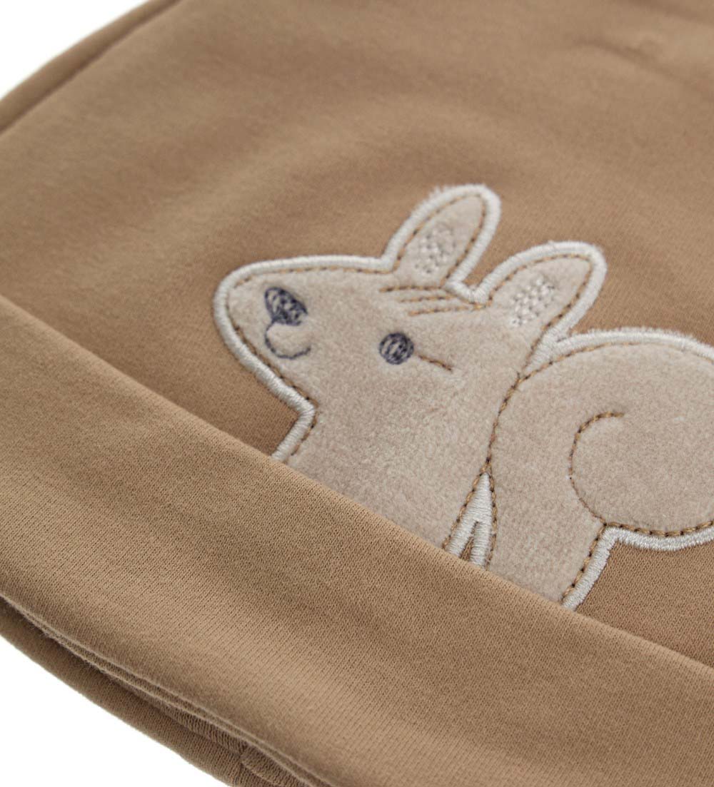 Bonnet en chenille doublé de coton avec revers et broderie sur le devant.