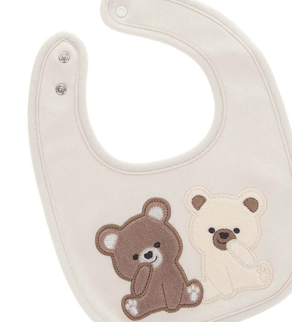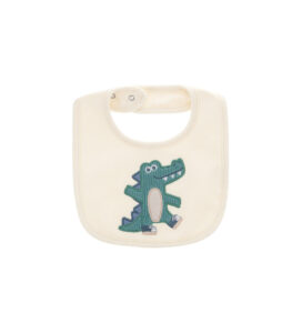 Bavoir en coton devant et en éponge derrière, pratique et tendance, avec ouverture réglable par pression. Orné d’appliqués et de broderies modernes.