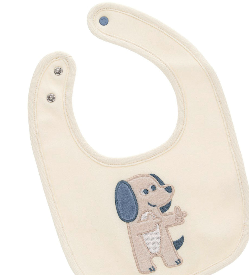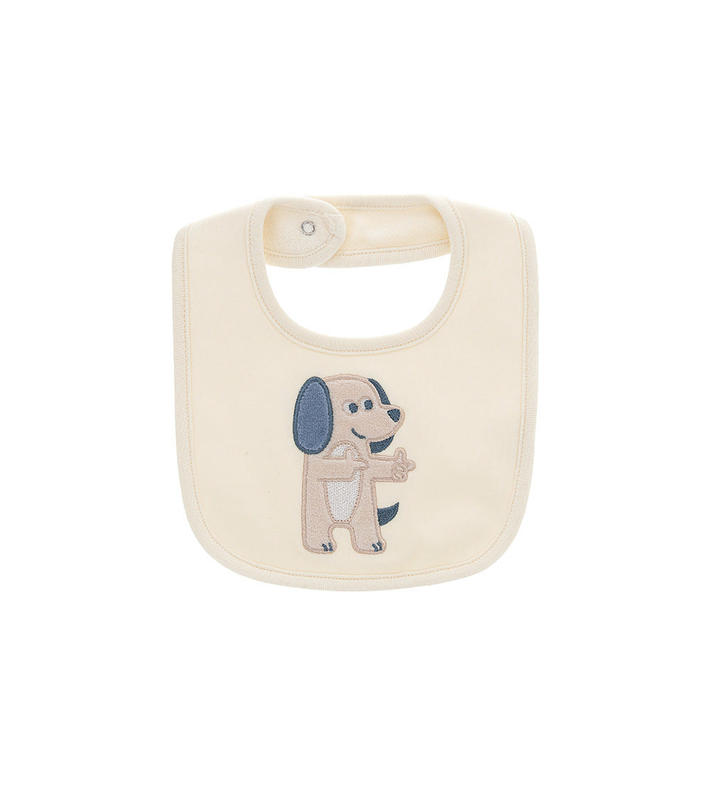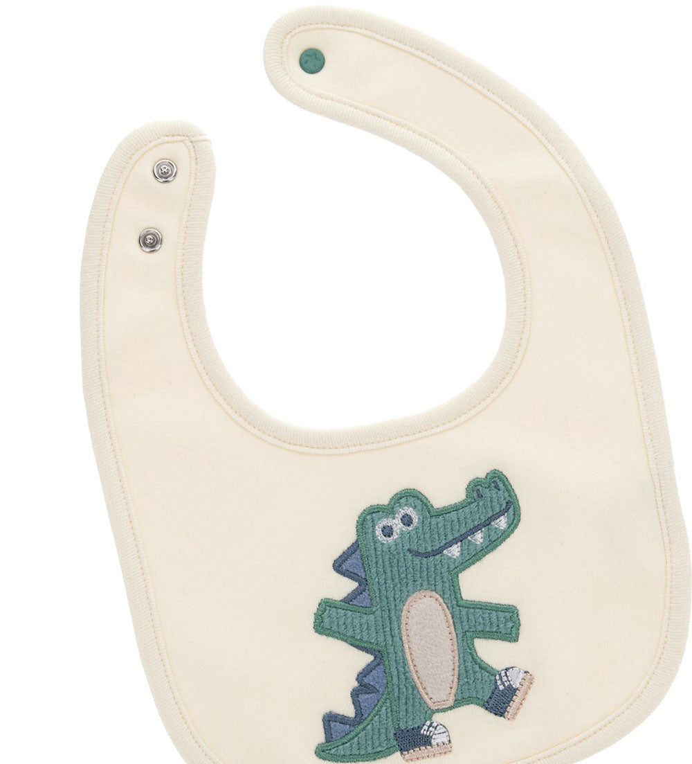 Bavoir en coton doux devant et tissu éponge derrière pour un confort optimal. Ouverture réglable par boutons-pression et délicate broderie crocodile devant.