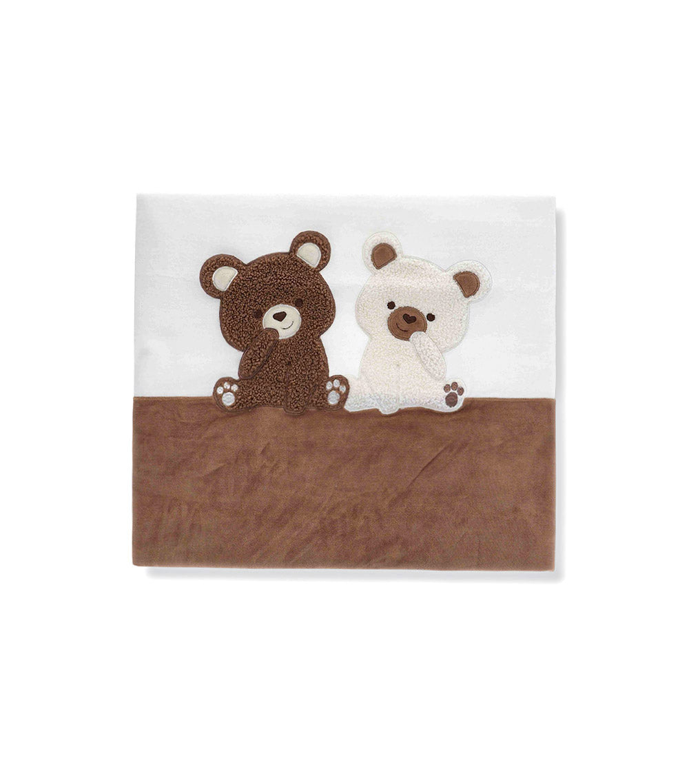 Couverture en chenille douce et enveloppante sur le devant et en coton au dos. Élégante application tendance et broderie raffinée sur le devant, idéale pour tous les câlins.
