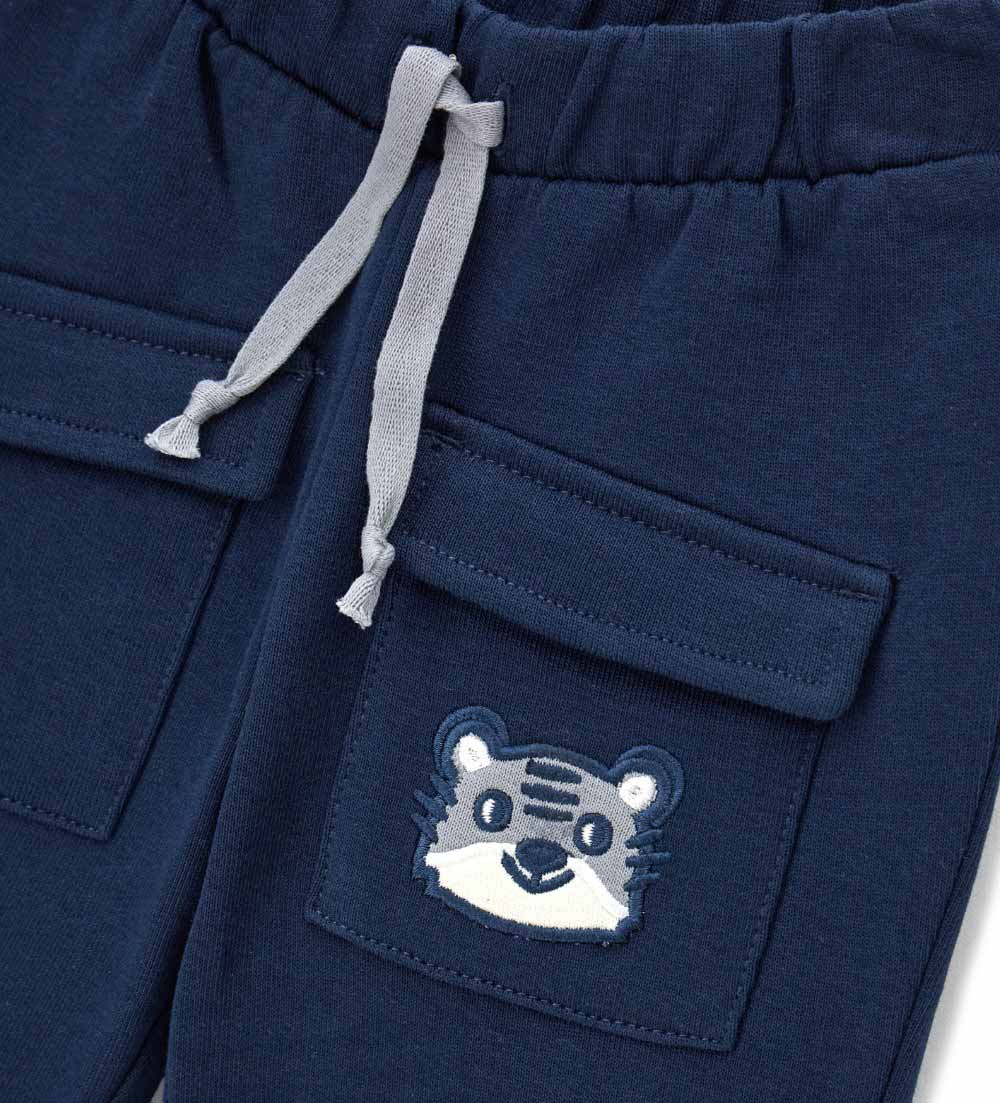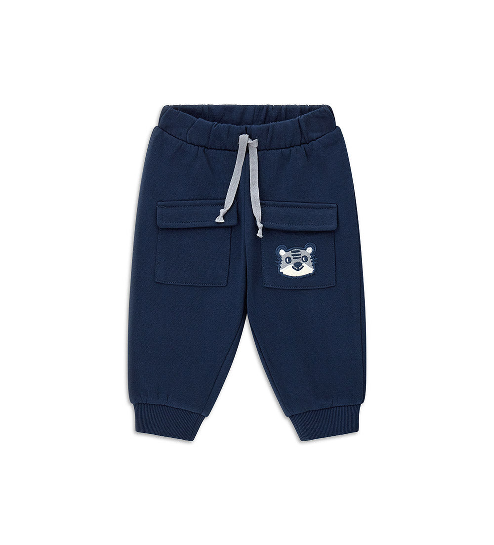 Pantalon sweat-shirt en coton avec taille et bas élastiques pratiques, poches plaquées sur le devant et broderie sur une poche pour un look pratique et tendance.
