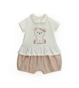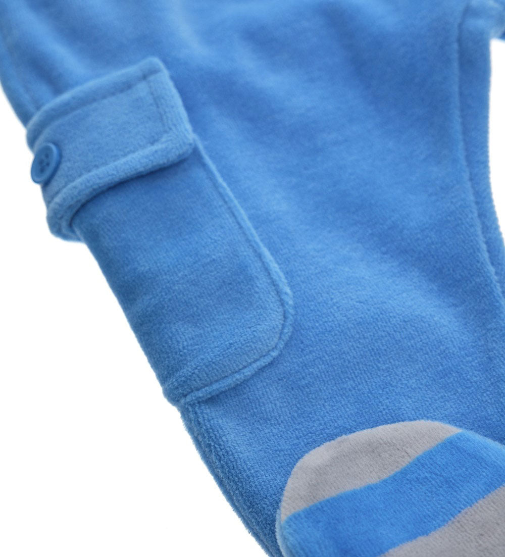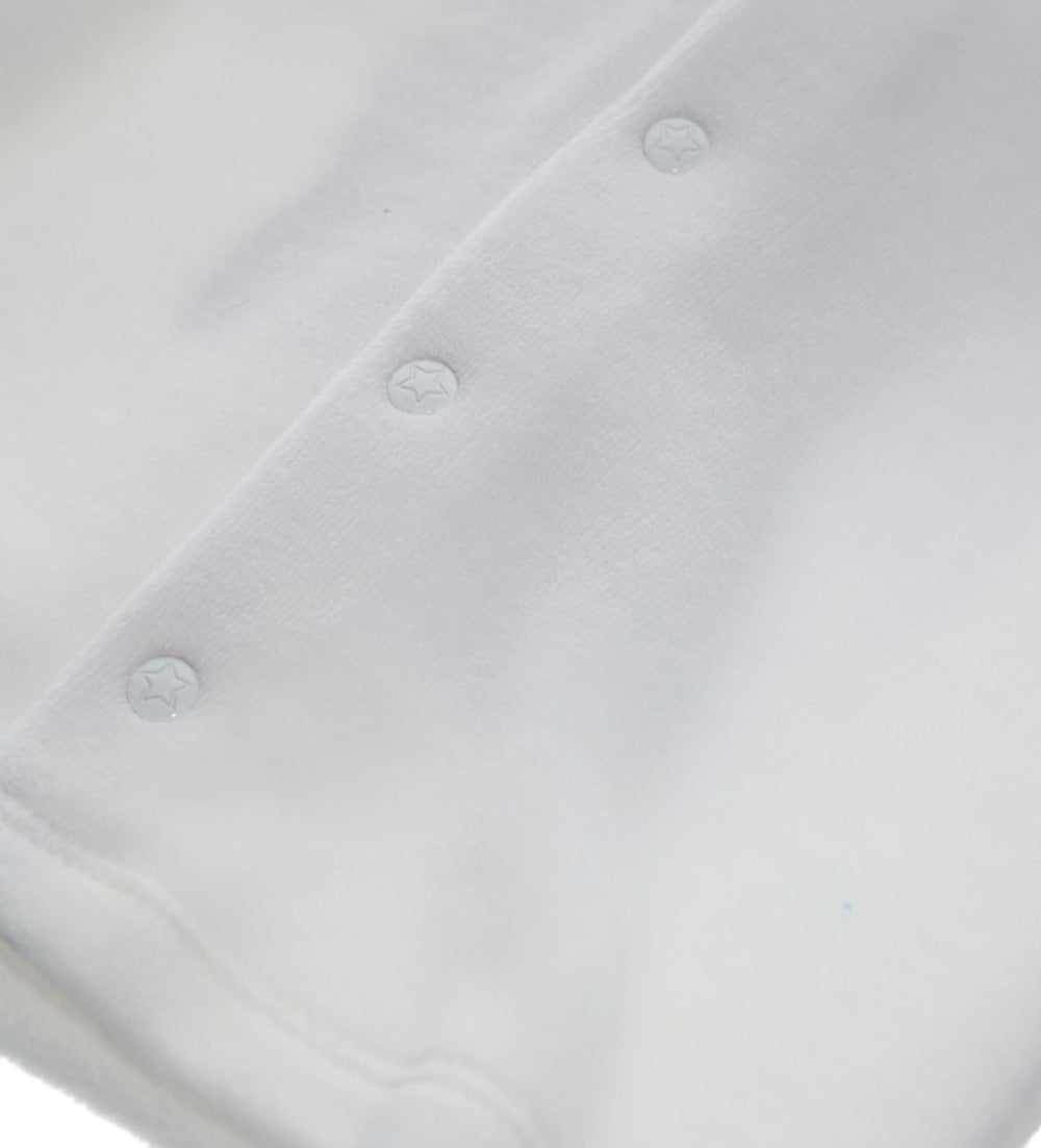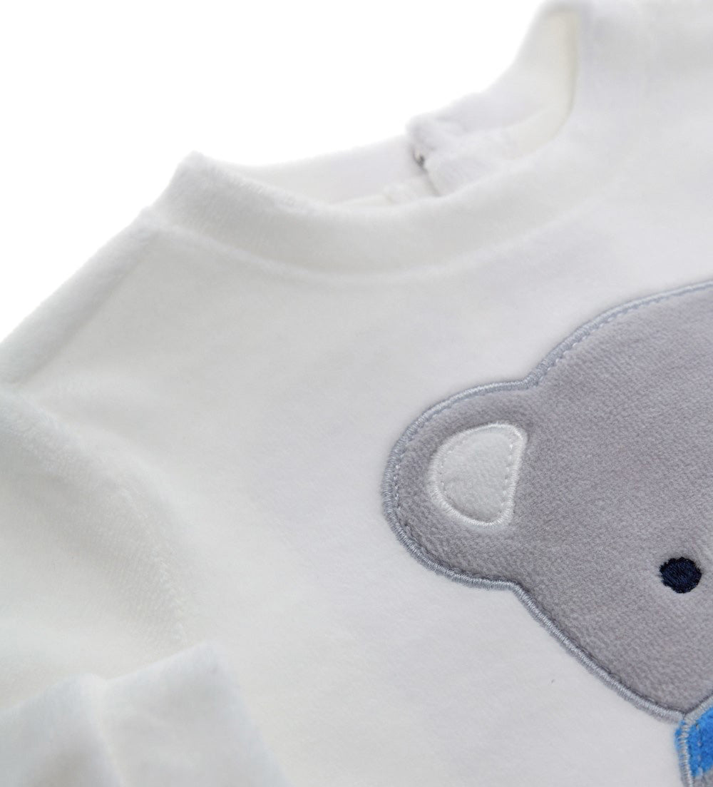 Ensemble pull et pantalon : pull ras du cou en chenille à manches longues, ouverture par boutons-pression au dos et broderie sur le devant. Pantalon en chenille à taille élastique et poches plaquées latérales.