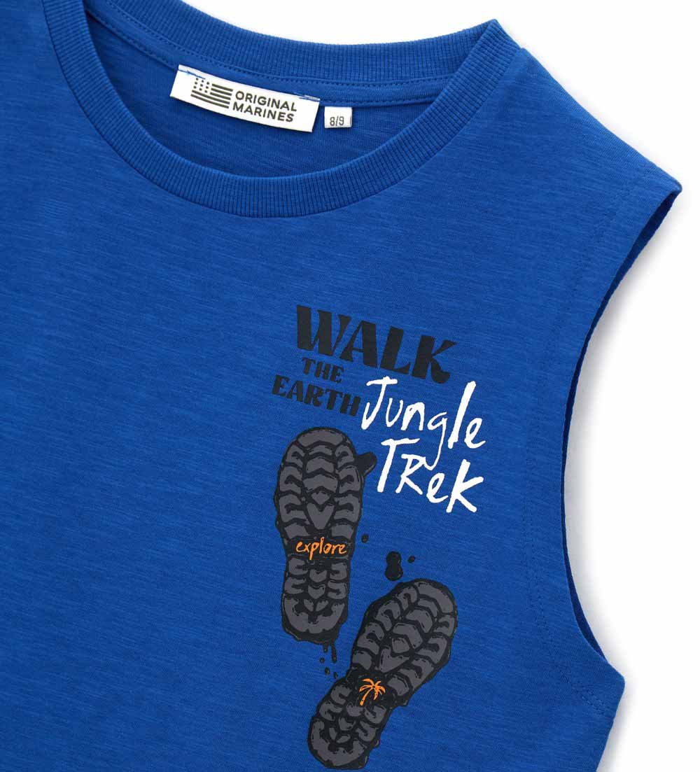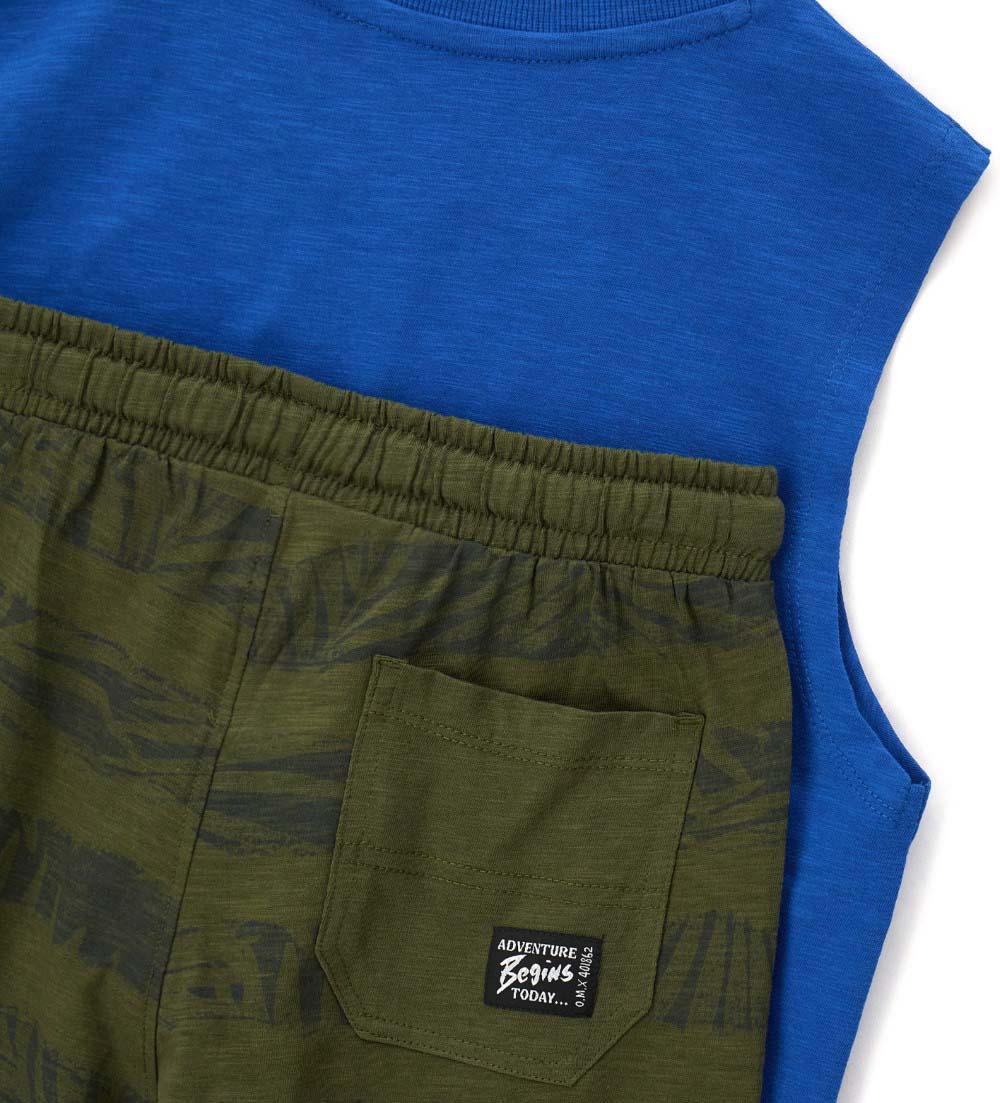 Ensemble débardeur et bermuda en coton avec débardeur à col rond avec bordure côtelée et imprimé sur le devant et bermuda avec taille ajustable par cordon de serrage et imprimés all-over.