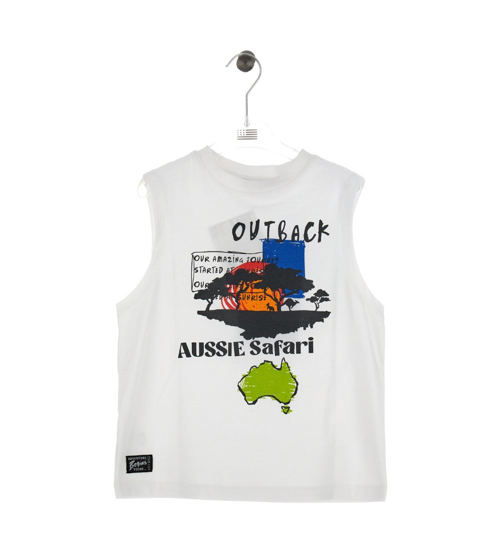 Débardeur en coton avec col ras du cou côtelé, imprimé sur le devant et étiquette brodée.
