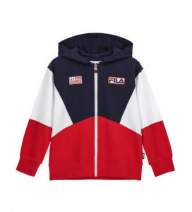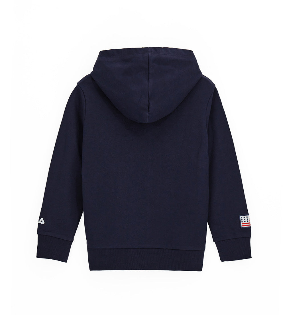Sweat-shirt en coton Fila à manches longues et capuche, bordure côtelée, imprimé sur le devant et broderie Fila sur la manche.