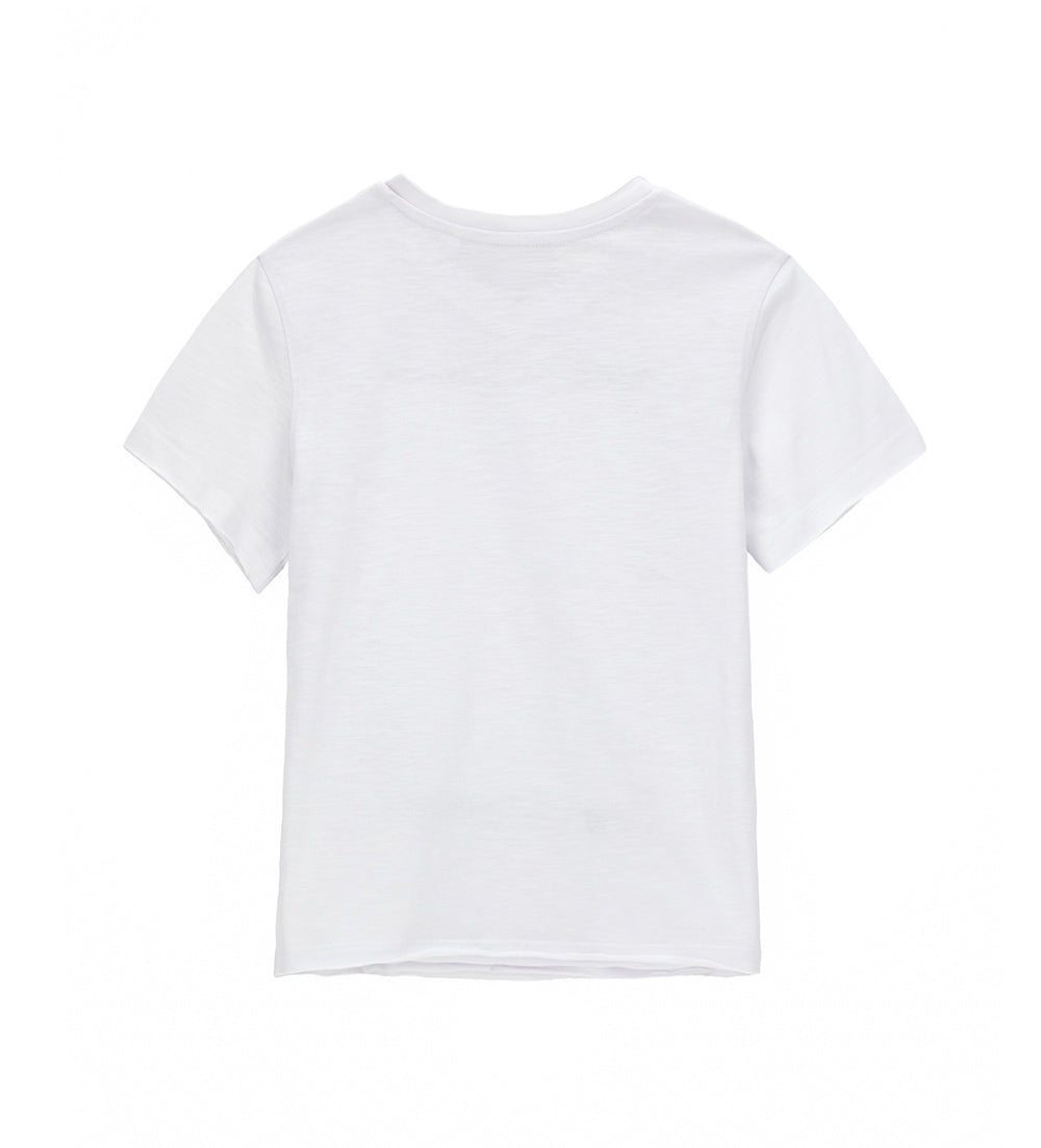 T-shirt en coton à bords bruts, col en V, manches courtes et imprimé photographique sur le devant.
