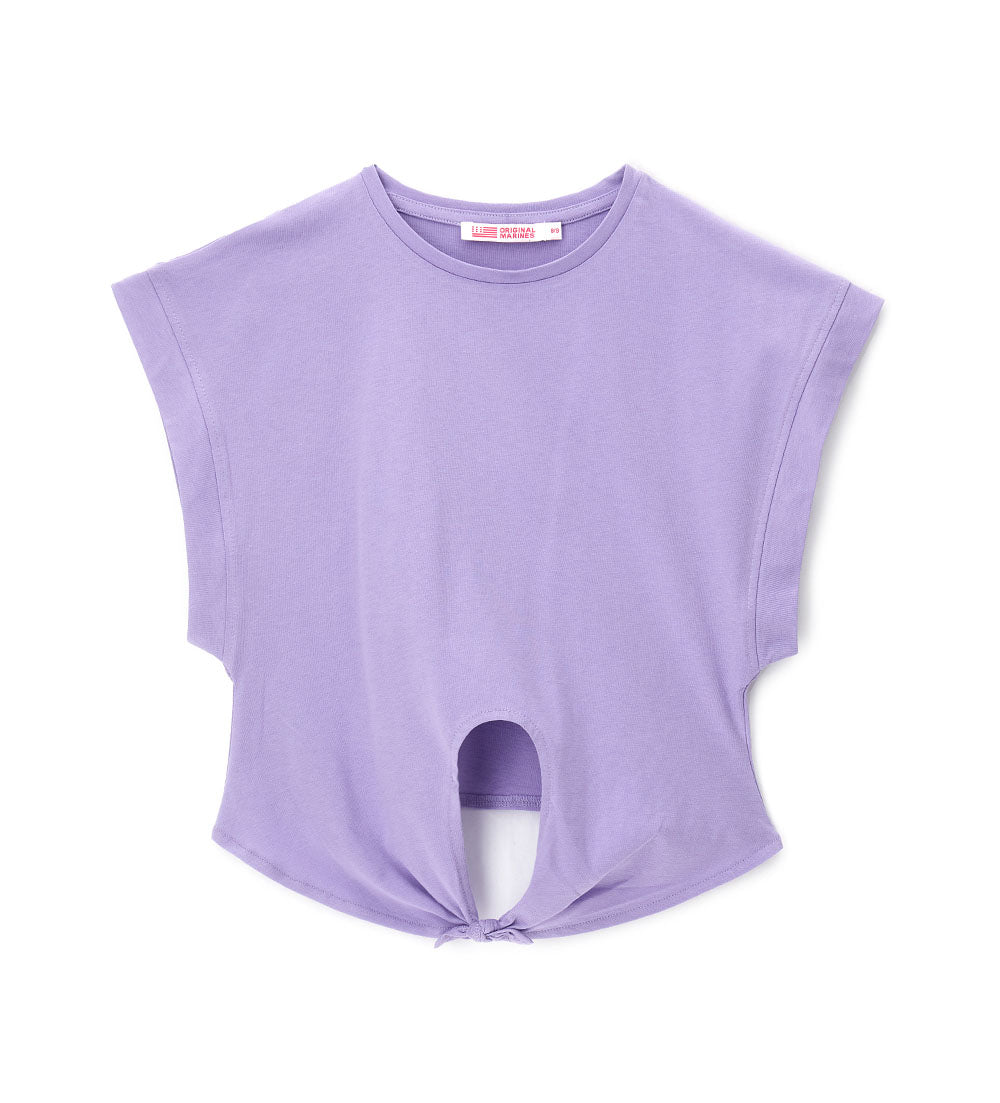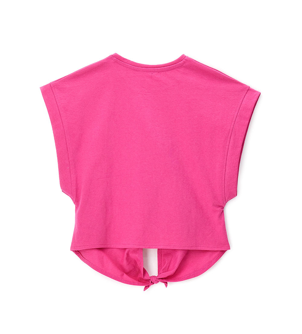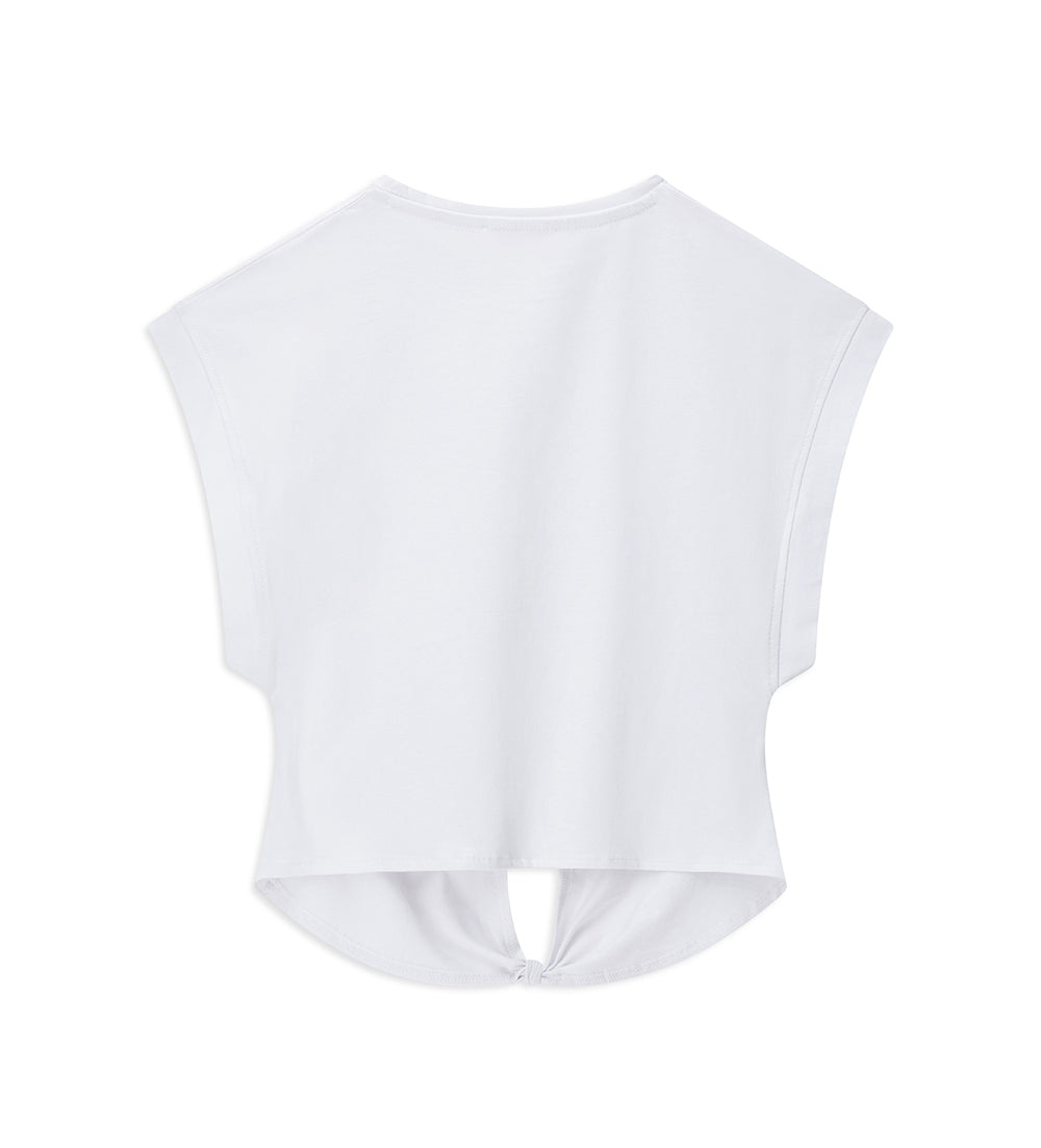 T-shirt en jersey de coton à col ras du cou avec nœud sur le devant.