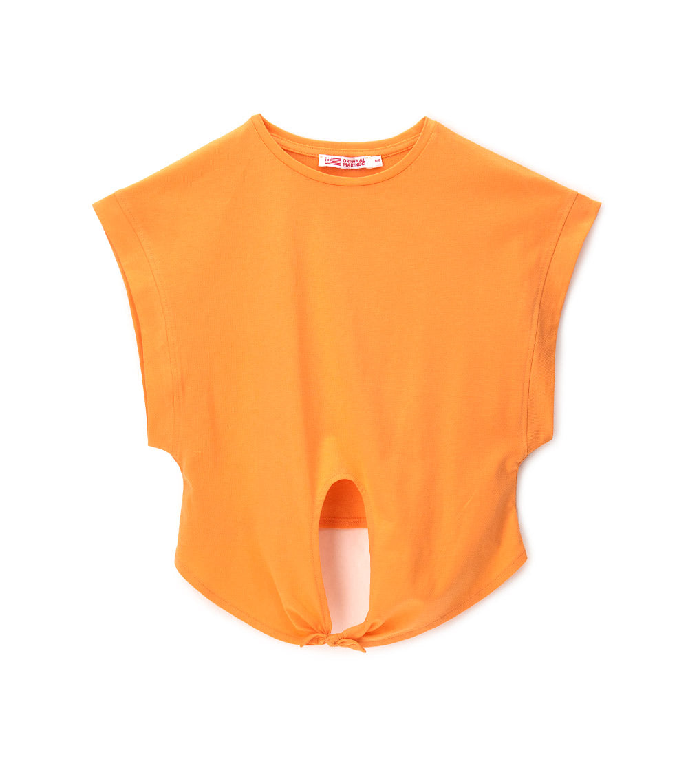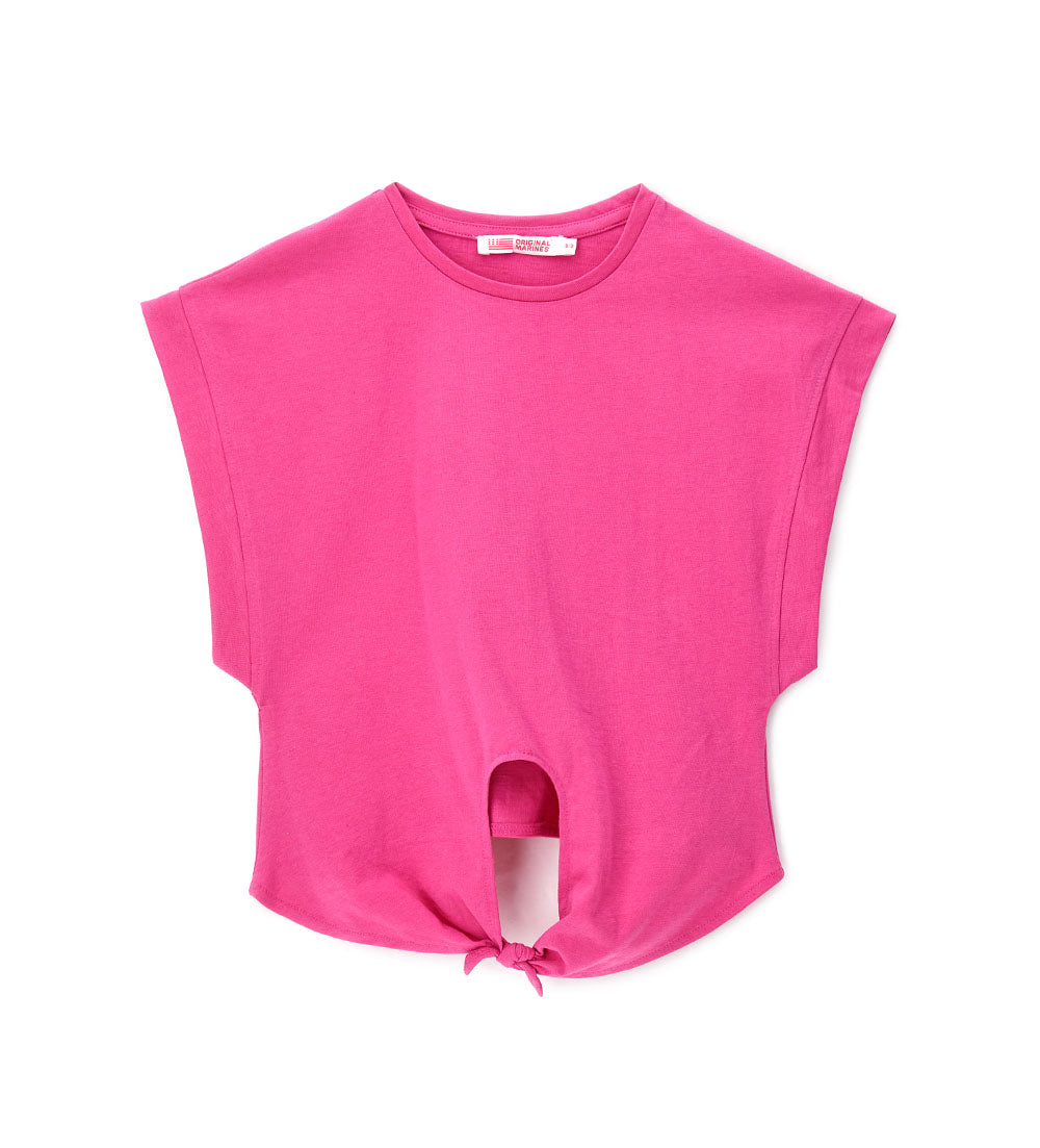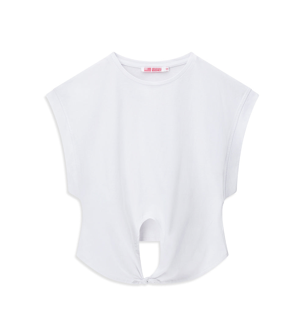T-shirt en jersey de coton à col ras du cou avec nœud sur le devant.