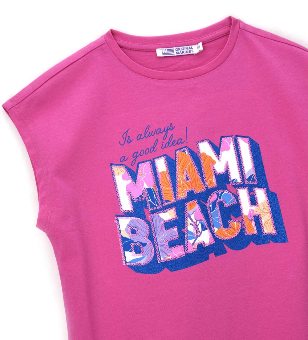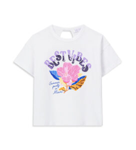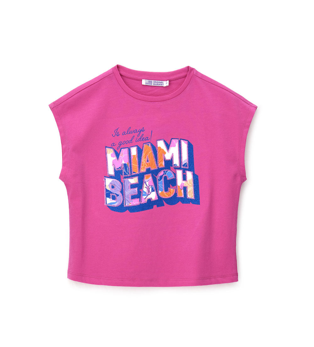T-shirt en coton à col ras du cou et manches courtes avec imprimé et paillettes sur le devant.