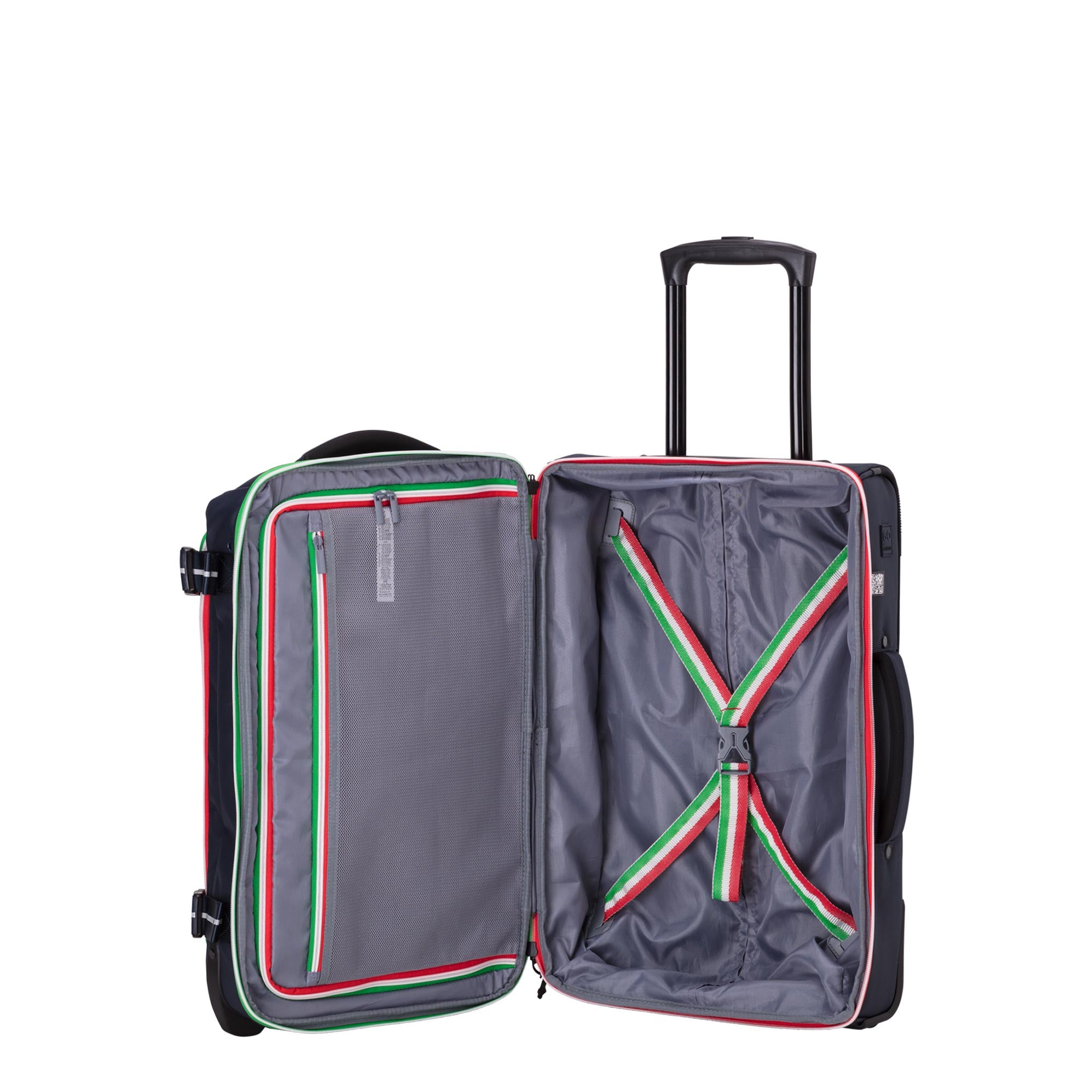 Valise à roulettes semi-rigide de la ligne Auckland Travel Italy de Carpisa, fabriquée en tissu résistant et imperméable. Sa construction souple et ses détails en ruban adhésif lui confèrent un look sportif et captivant. Épaisseur : 22 cm x hauteur : 34 cm x longueur : 53 cm. Polyester : 100 % polyester. Épaisseur : 22 cm x hauteur : 34 cm x longueur : 53 cm.