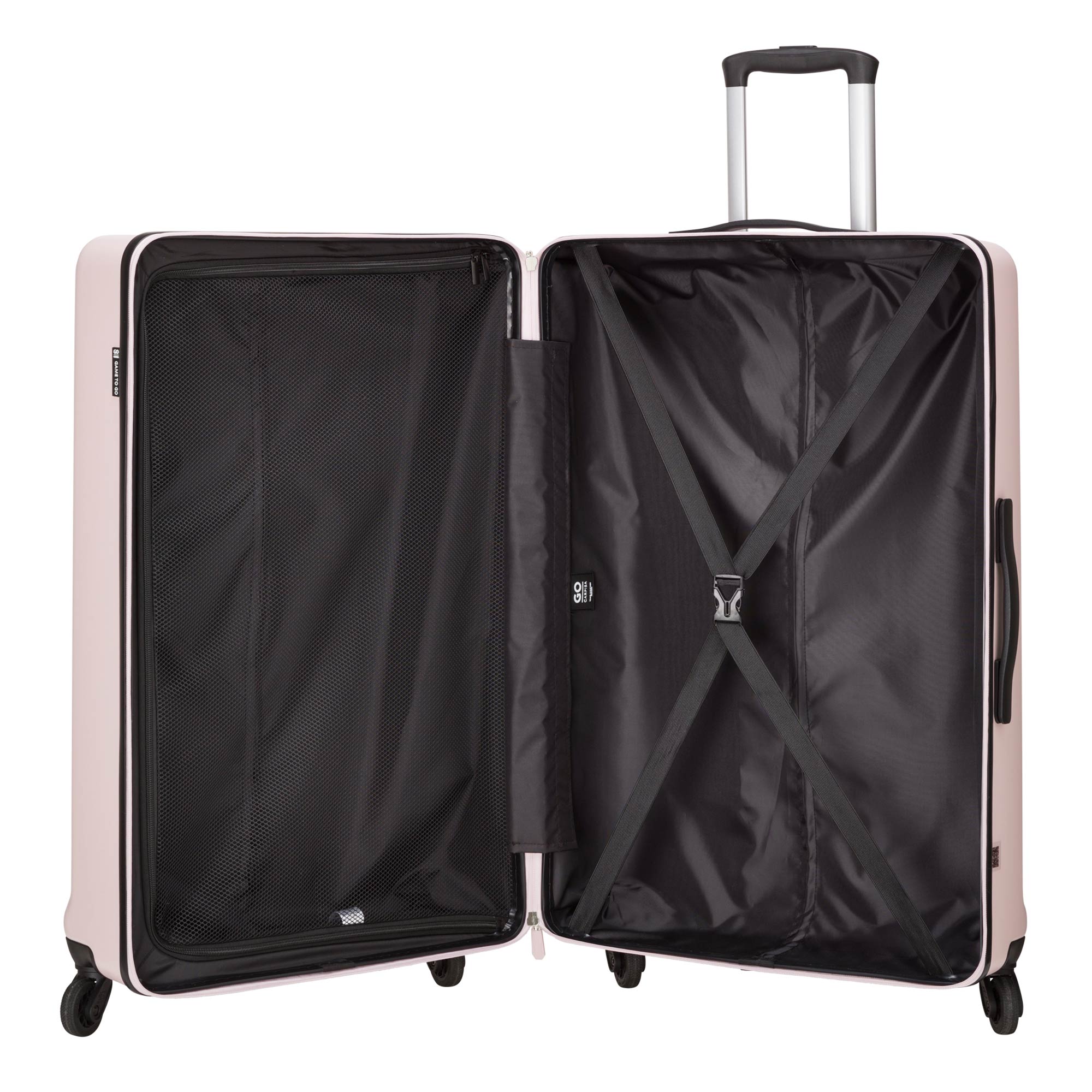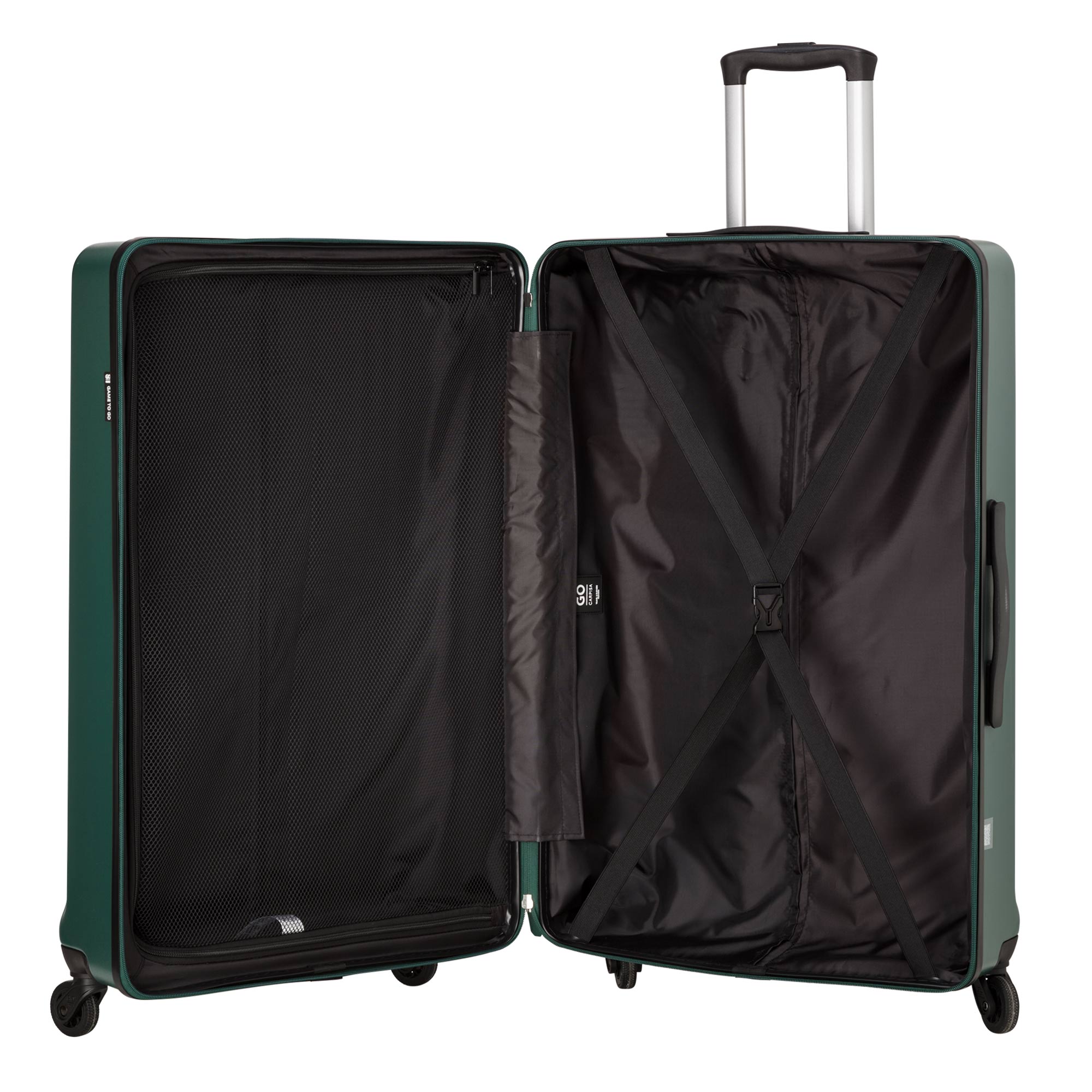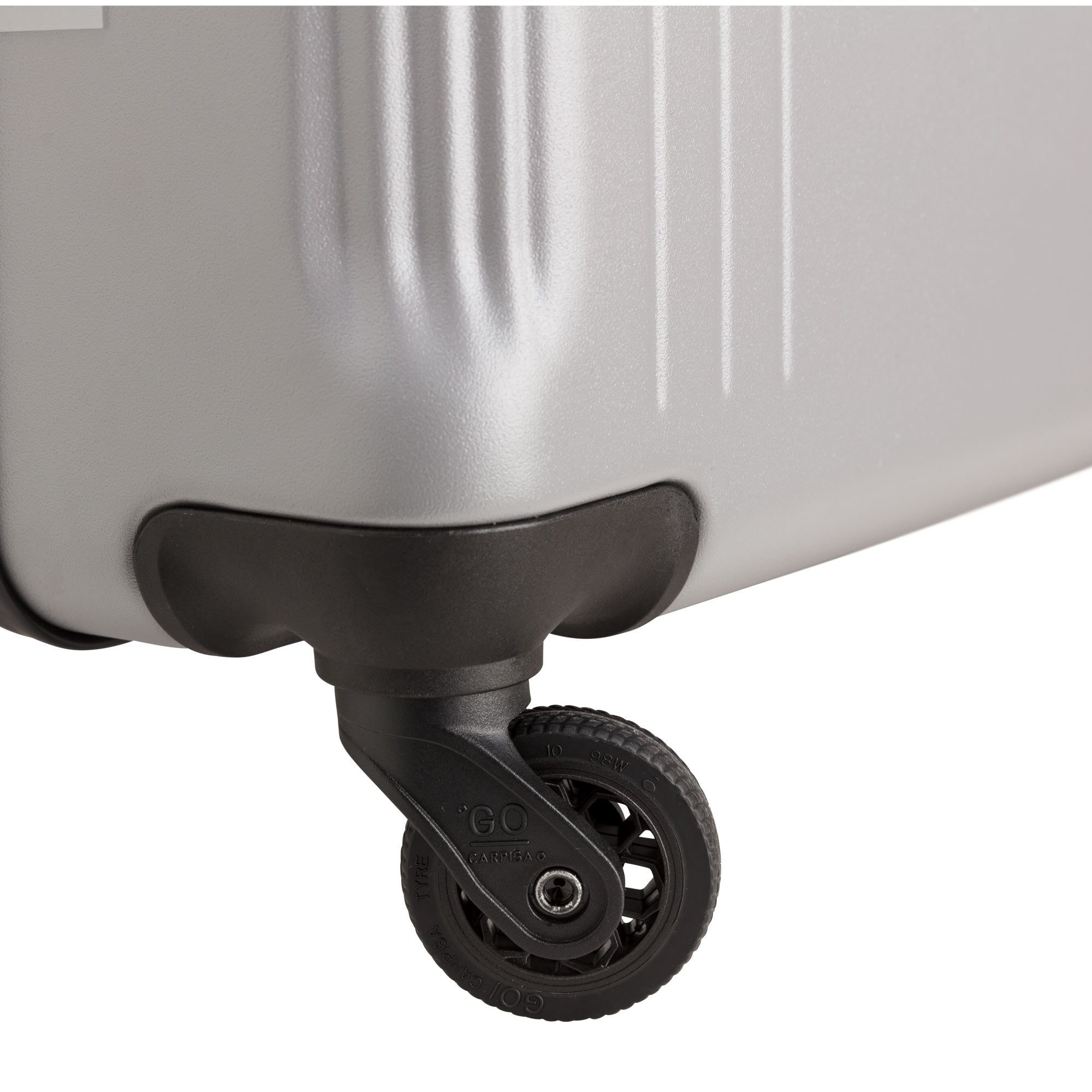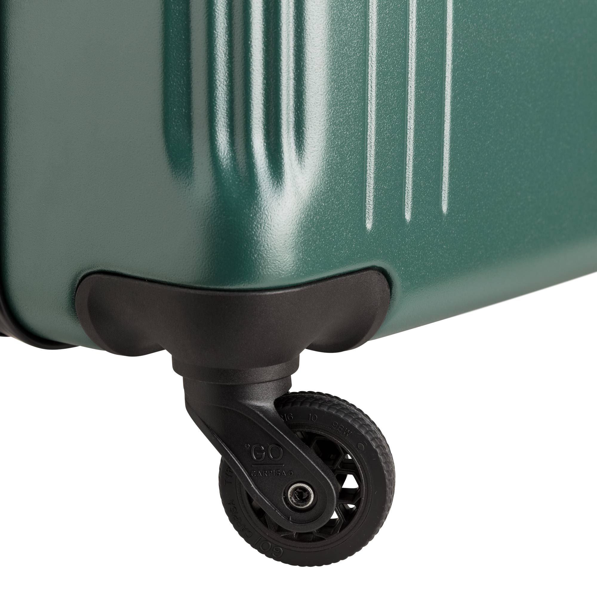 Trolley L de la gamme Game to go Turtle de Carpisa, fabriqué en ABS et film polycarbonate, avec une surface satinée et légèrement opaque.