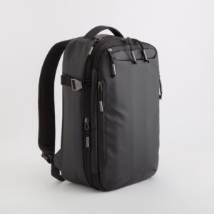 Sac à dos Airfit by Carpisa en néolamination, un matériau technique recyclé avancé offrant une excellente résistance à l’abrasion, à l’eau et aux déchirures. Ce modèle est équipé d’une poche sous vide avec valve intégrée qui réduit les dimensions intérieures, optimise l’espace et répond aux exigences des compagnies aériennes low-cost pour les bagages à main.