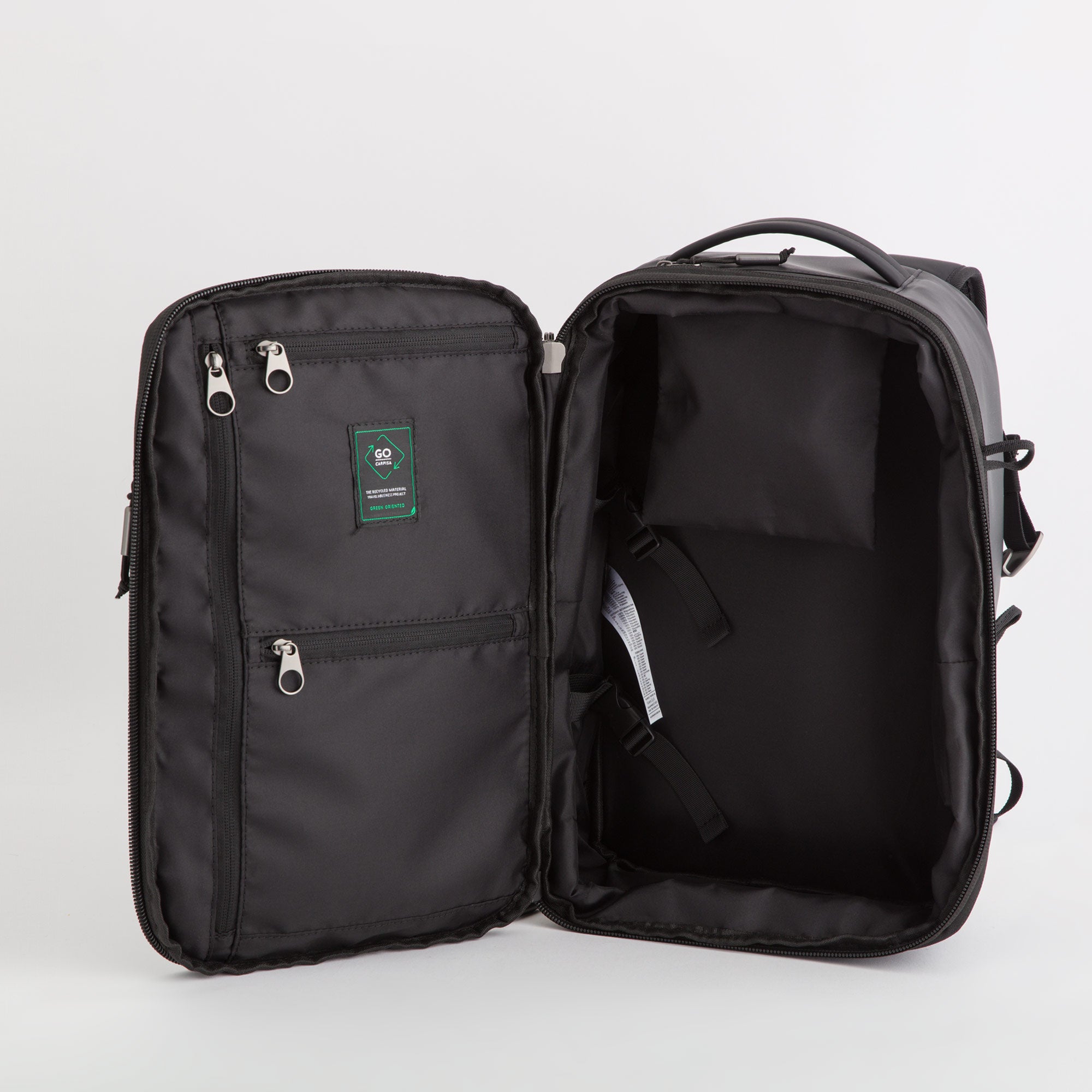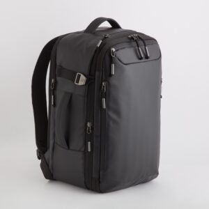 Sac à dos Airfit by Carpisa en néolamination, un matériau technique recyclé avancé offrant une excellente résistance à l’abrasion, à l’eau et aux déchirures. Ce modèle est équipé d’une poche sous vide avec valve intégrée qui réduit les dimensions intérieures, optimisant ainsi l’espace et répondant aux exigences des compagnies aériennes low-cost pour les bagages à main. Caractéristiques : Nombreuses poches intérieures et extérieures Extensible Sac sous vide Dossier respirant Système de fixation à roulettes Bretelles réglables