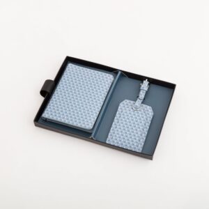 Kit de voyage de la gamme Zurich by Carpisa, composé d’un étui à passeport et d’une étiquette pour valise. L’étui à passeport est doté de trois emplacements pour documents et de trois emplacements pour cartes, avec protection RFID anti-clonage.