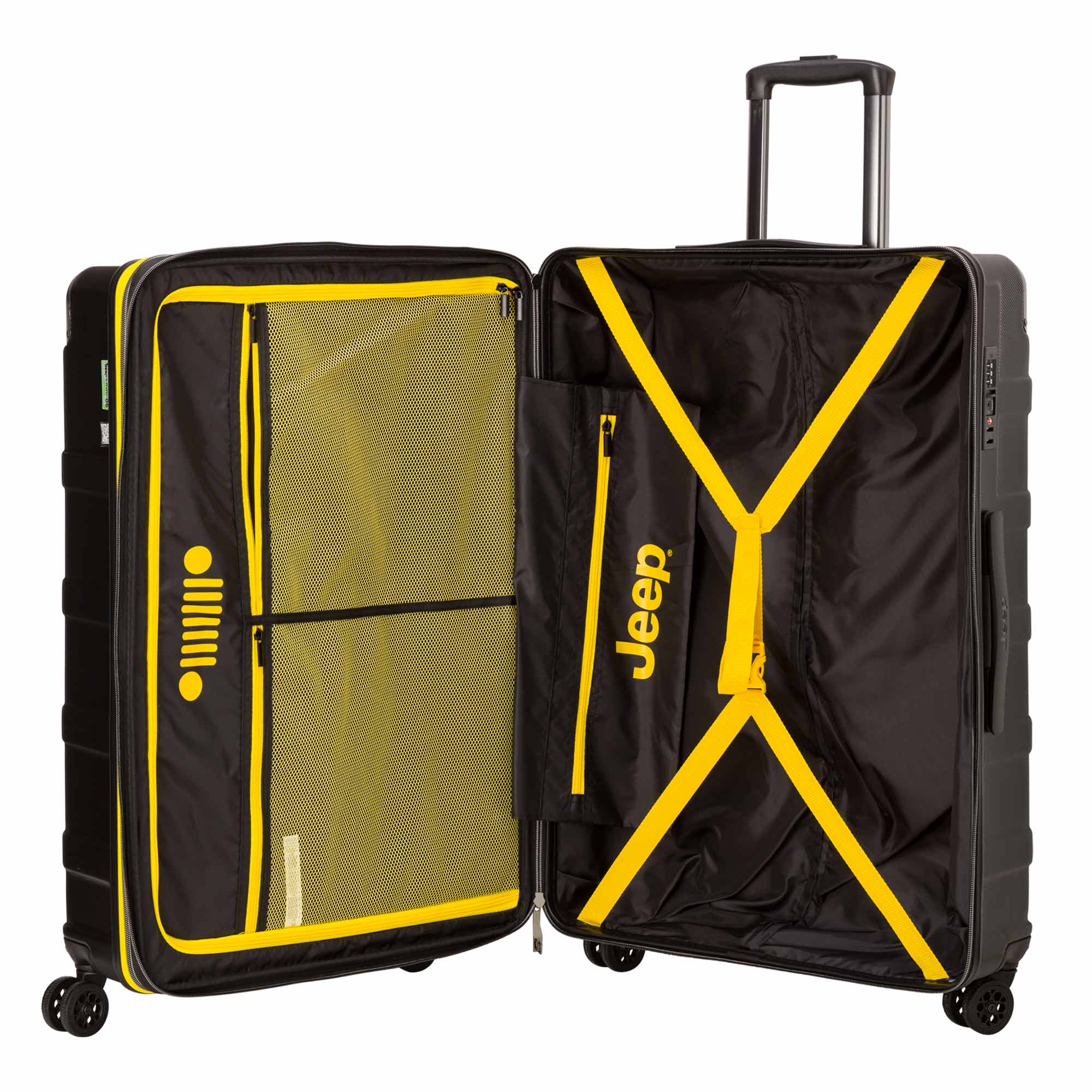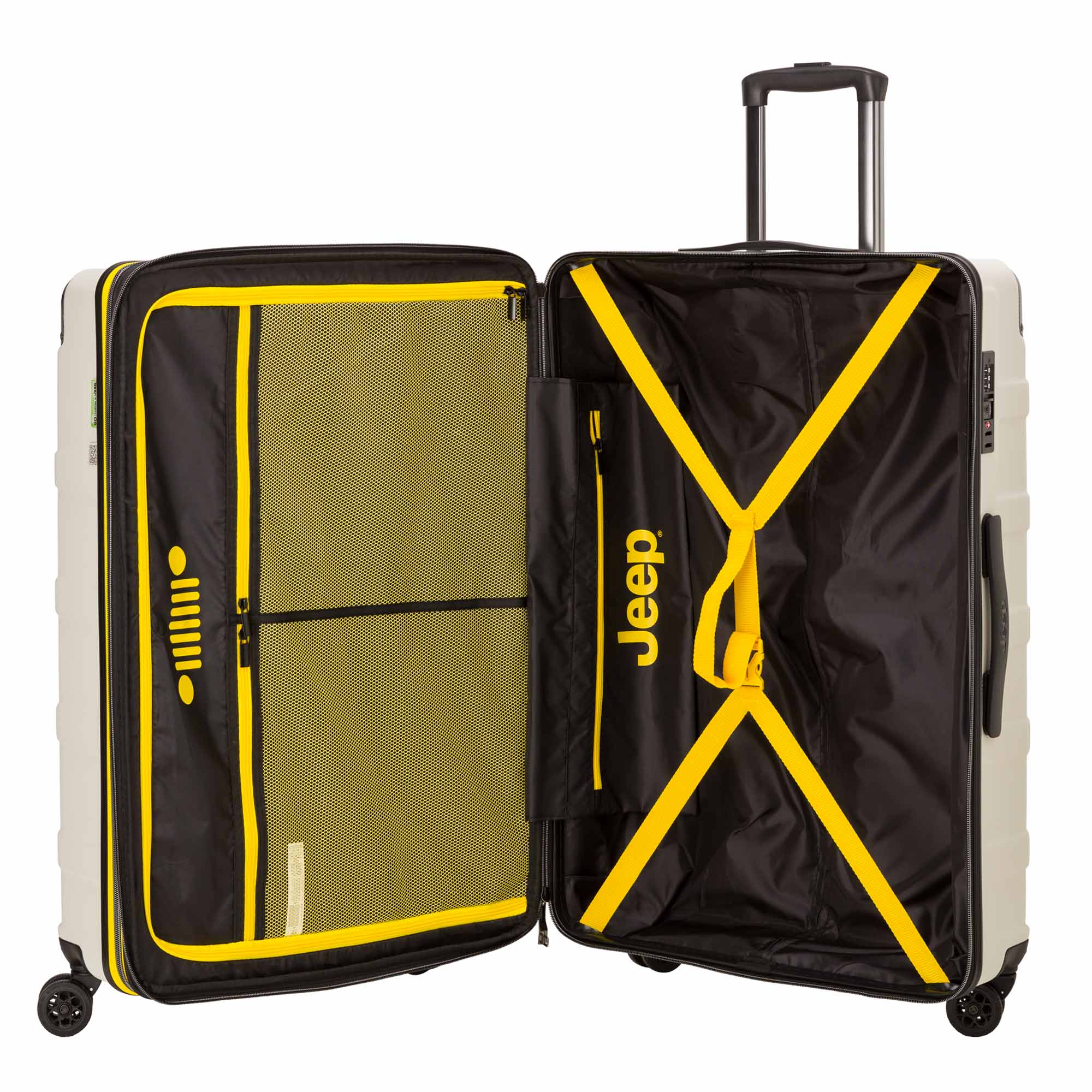 Trolley L de la gamme Powerhead Jeep, fruit de la collaboration de Carpisa et Jeep. Ce trolley se distingue par son design élégant, ses fermetures éclair de couleur contrastée et ses coins métalliques qui accentuent encore son audace, en parfaite harmonie avec l’esprit aventureux de Jeep. Épaisseur : 29 cm x hauteur : 49 cm x longueur : 69 cm. ABS/Polycarbonate. ABS : 80 % polycarbonate : 20 %. Épaisseur : 29 cm x hauteur : 49 cm x longueur : 69 cm.