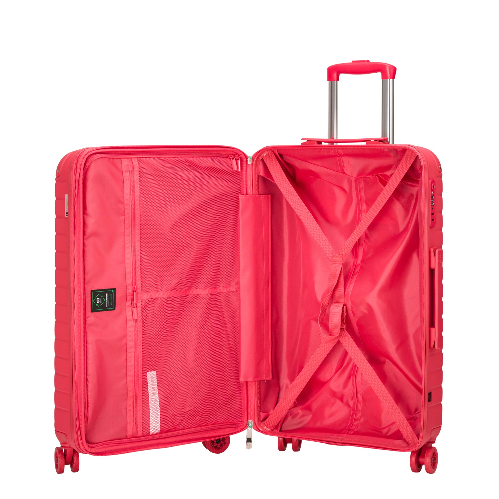 La valise Carpisa Gotech Green est fabriquée dans un matériau ultra-résistant composé à 80 % de matériaux recyclés. La doublure intérieure est 100 % recyclée.