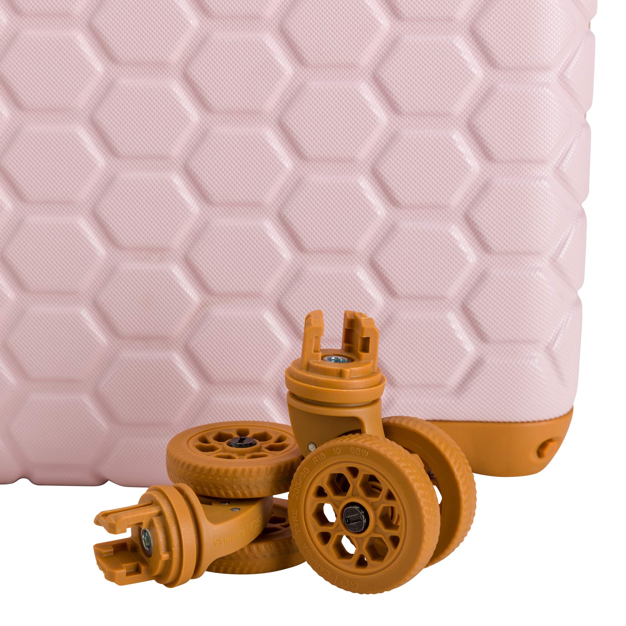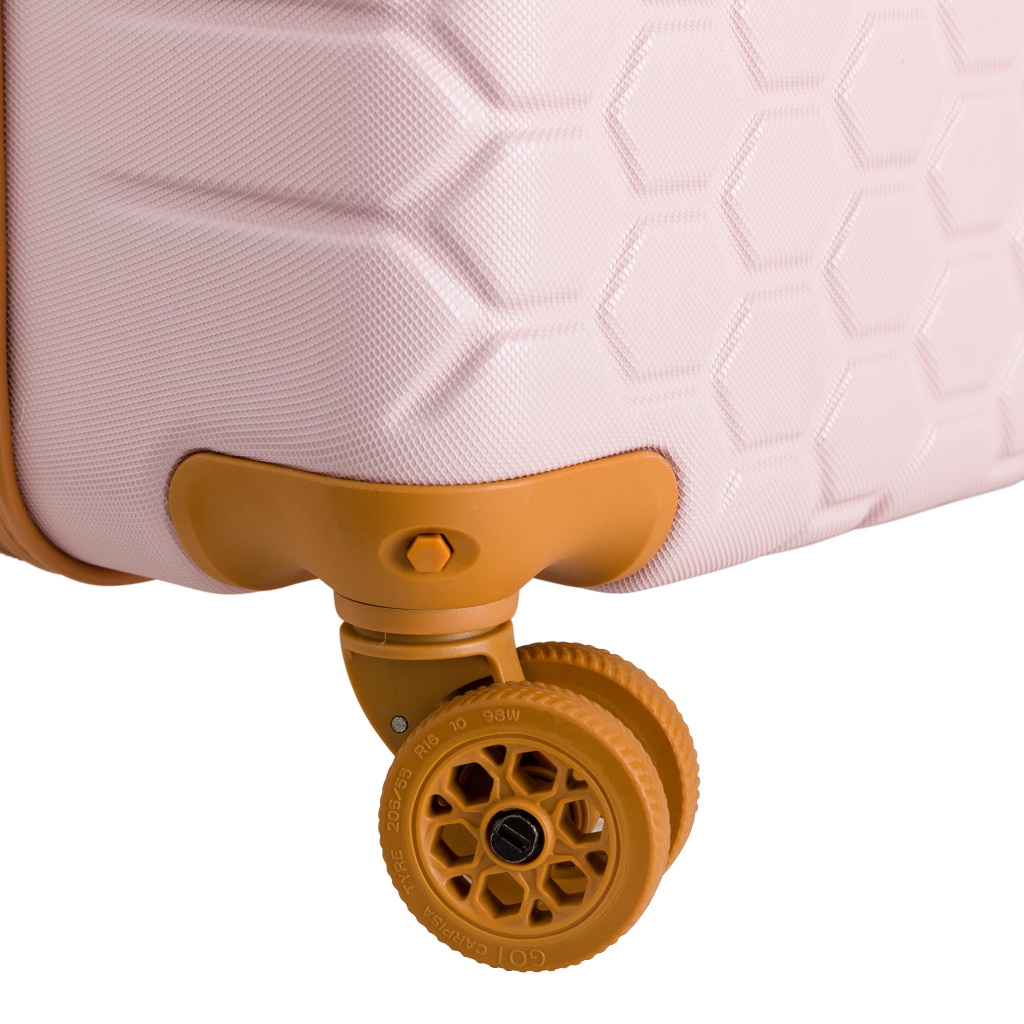 Doubles roues détachables avec bouton, ultra-silencieuses et Système de chariot breveté Carpisa Lab, avec système ergonomique de réglage de la hauteur et design innovant anti-oscillation. Poignée latérale. Polycarbonate extensible 70 % ABS 30 %.