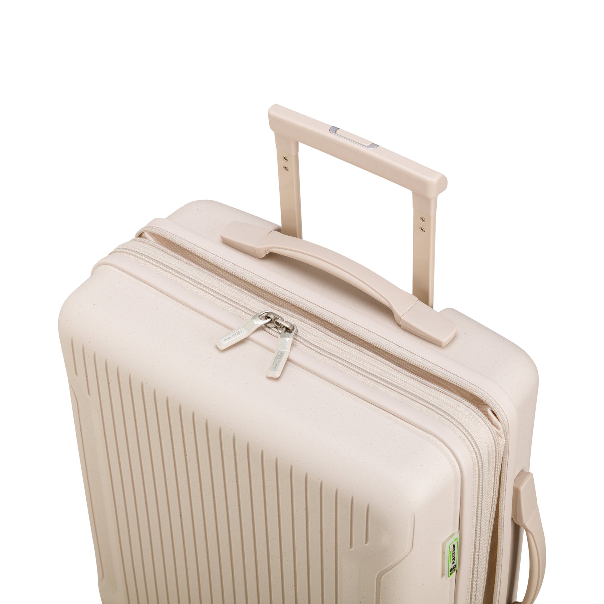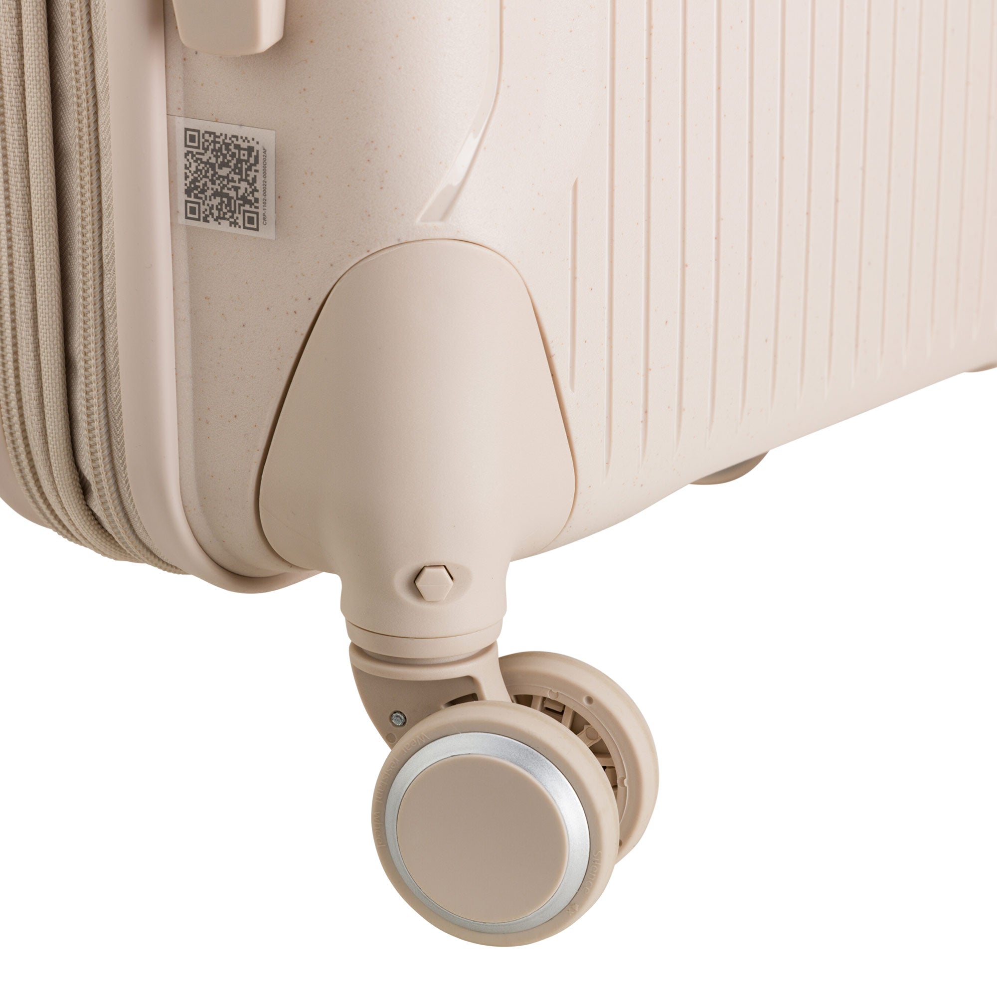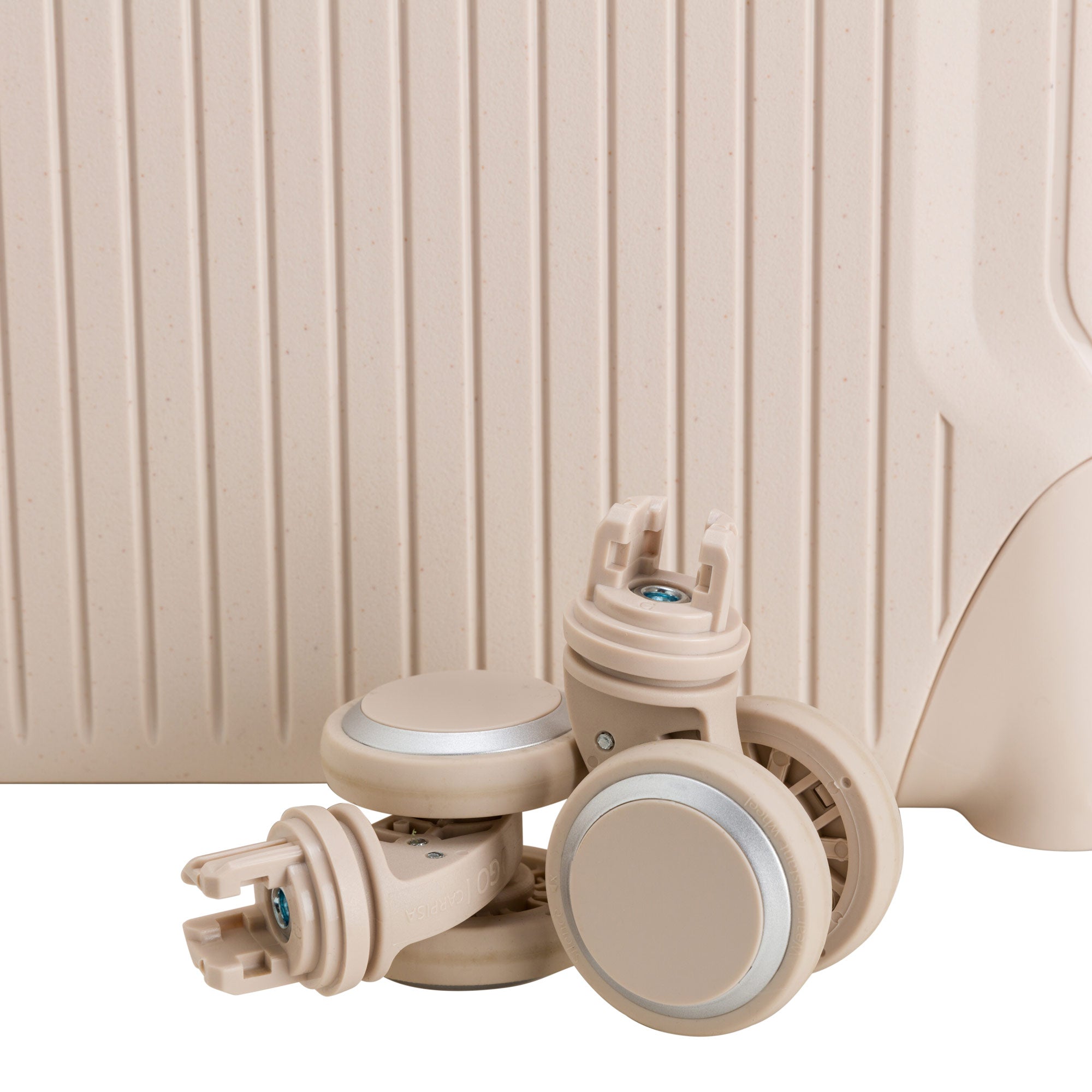 Nouvelles roues doubles amovibles Carpisa Roues Carpisa ROUNDED, avec un design renouvelé et une bande de roulement lisse qui offre un plus grand silence tout en préservant une résistance extrême. Extensible et équipé d’une serrure TSA. Polypropylène 90 % et paille 10 %.