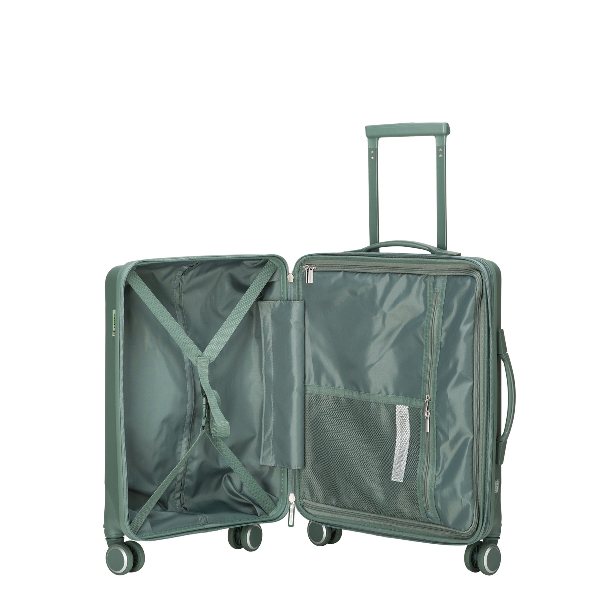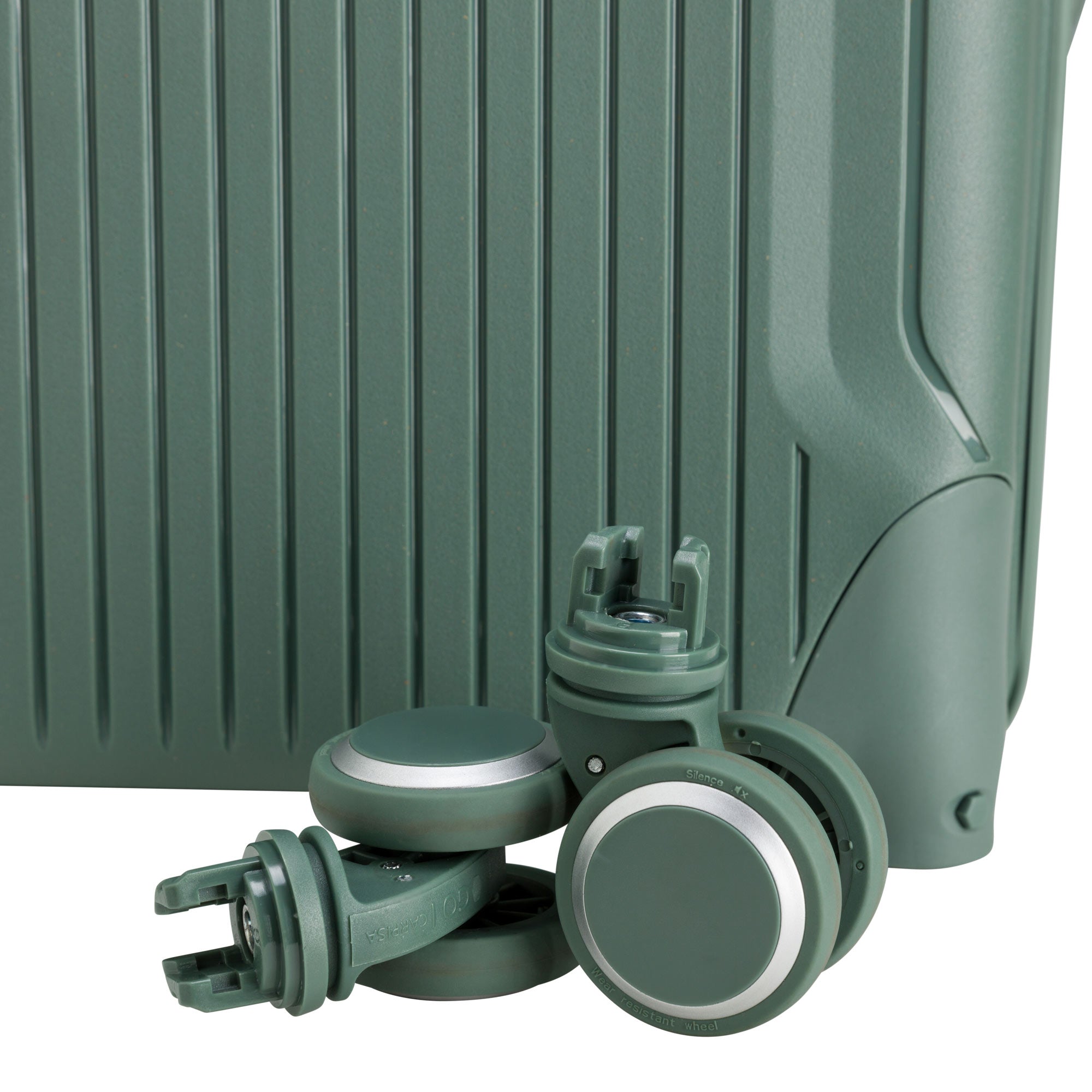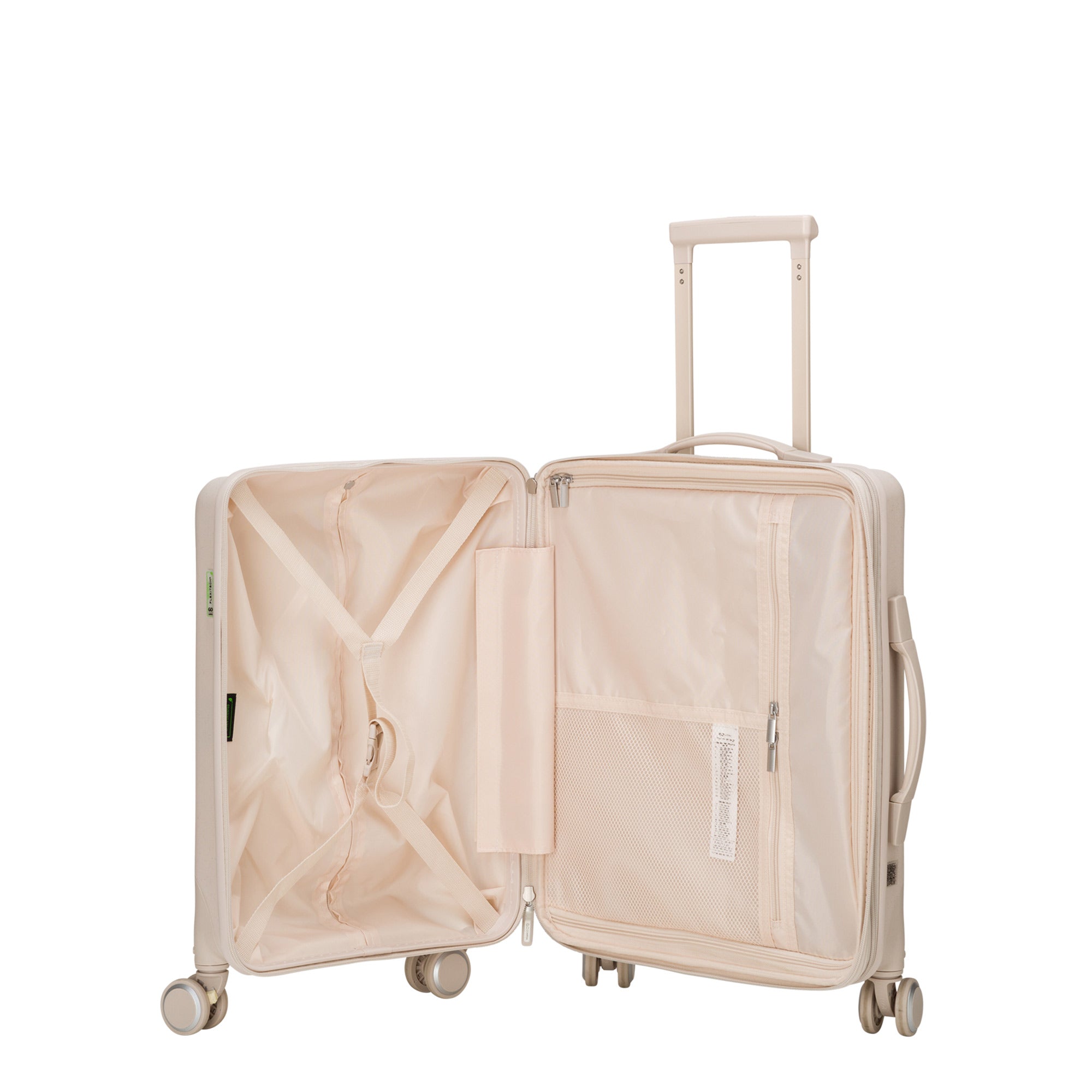 Nouvelles roues doubles amovibles Carpisa Roues Carpisa ROUNDED, avec un design renouvelé et une bande de roulement lisse qui offre un plus grand silence tout en préservant une résistance extrême. Extensible et équipé d’une serrure TSA. Polypropylène 90 % et paille 10 %.