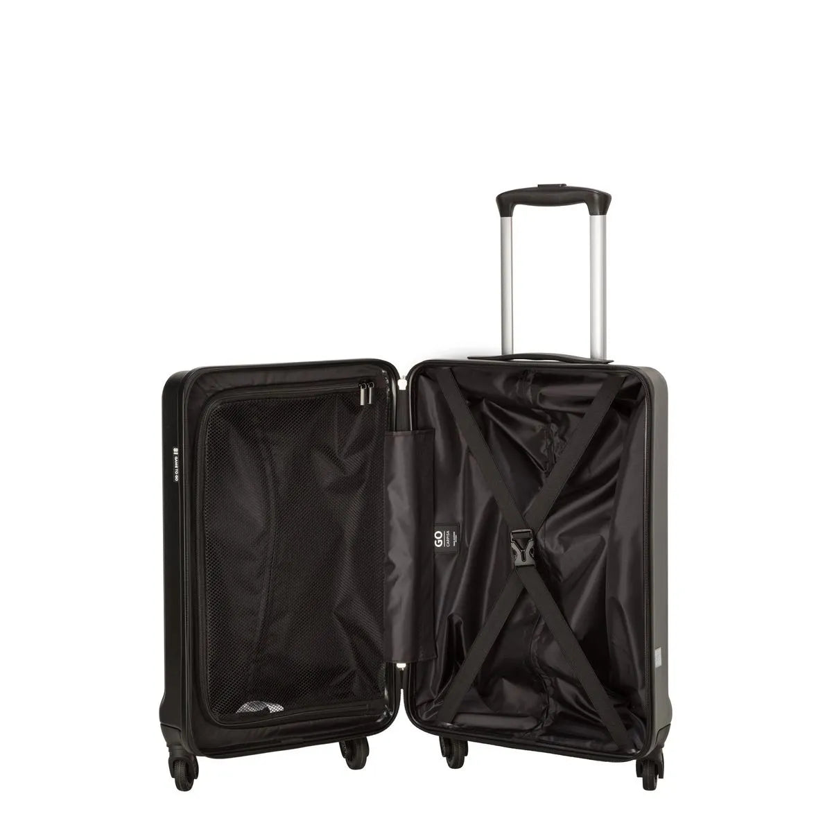 Des lignes épurées et verticales, des roulettes fixes personnalisées Carpisa et notre logo estampé sur le panneau avant.